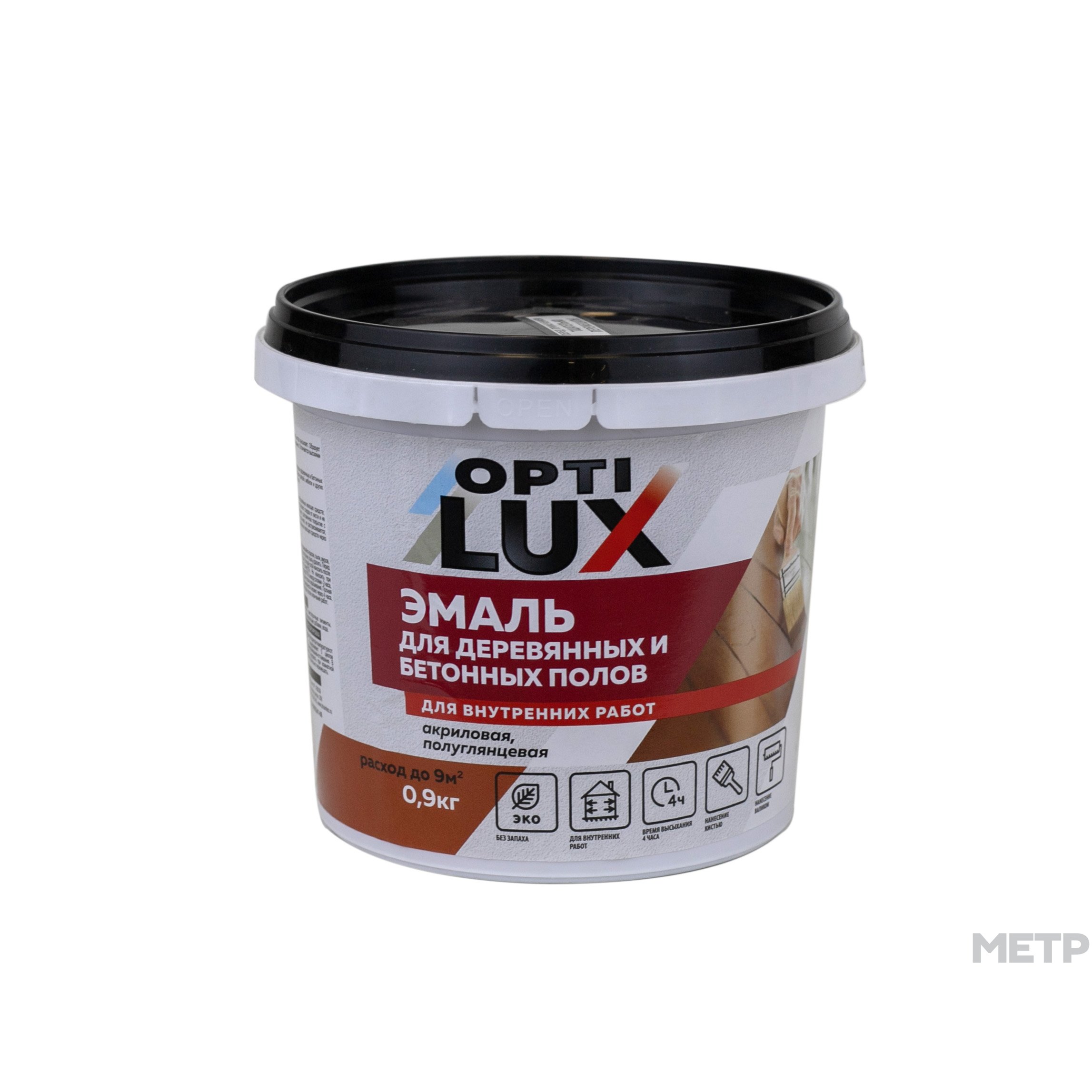 Эмаль акриловая Оптилюкс для пола светло-коричневая 0,9 кг, - предназначена для окраски деревянных и бетонных полов внутри бытовых помещений. Может применяться для окраски дверей, мебели и других поверхностей внутри помещений. Можно наносить на ранее окрашенные поверхности. Обладает высокой степенью укрывистости и адгезии. Образует долговечное покрытие с высокими защитными свойствами. Быстро высыхает. После высыхания образует полуглянцевую поверхность.