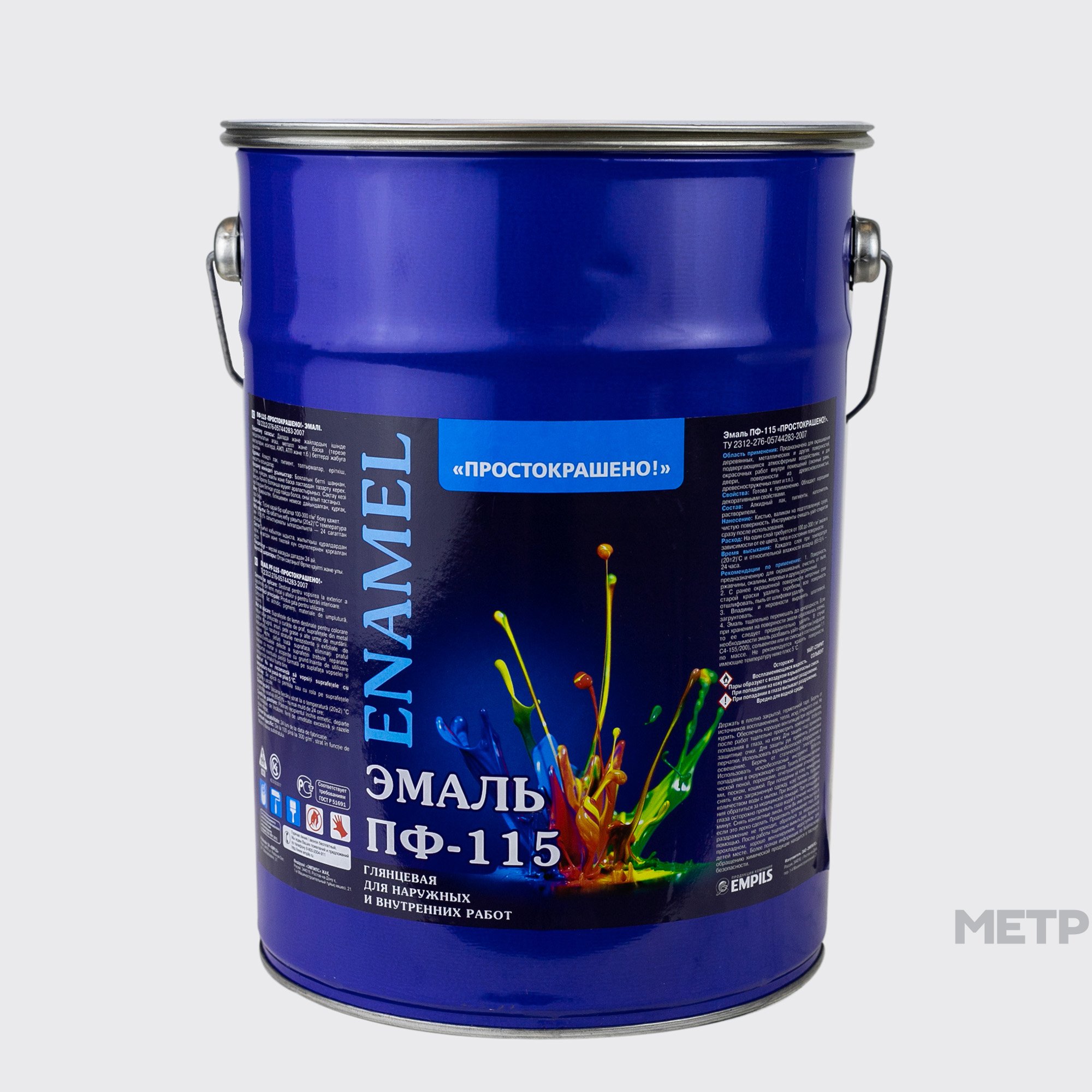 Эмаль алкидная ПФ-115 Простокрашено белая 6 кг, предназначена для окрашивания деревянных, металлических и других поверхностей, подвергающихся атмосферным воздействиям, и для окрасочных работ внутри помещений (оконные рамы, двери, поверхности из древесноволокнистых, древесностружечных плит и т. п.). Отличается хорошими декоративными свойствами. Экономична. Срок эксплуатации покрытия не менее 2 лет.