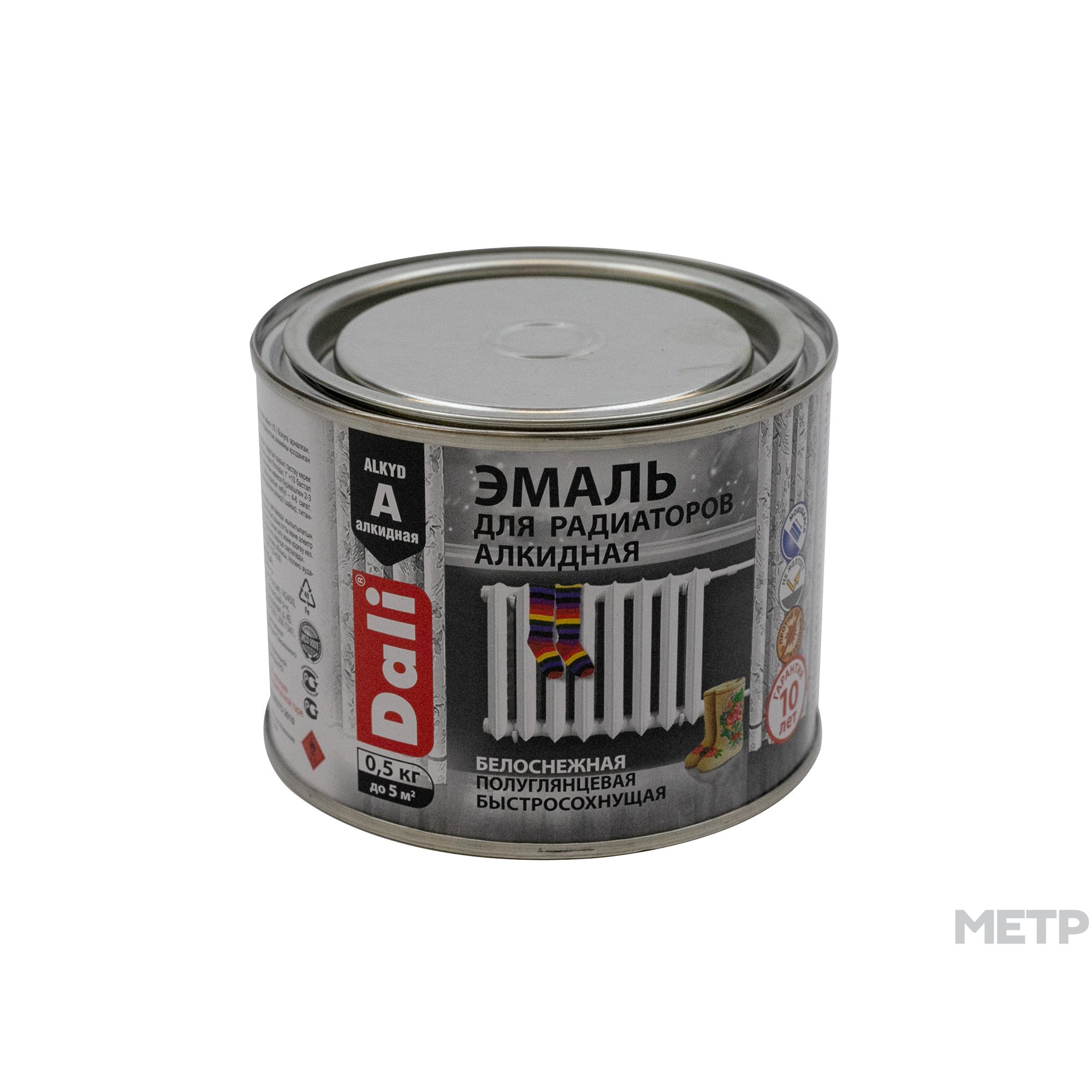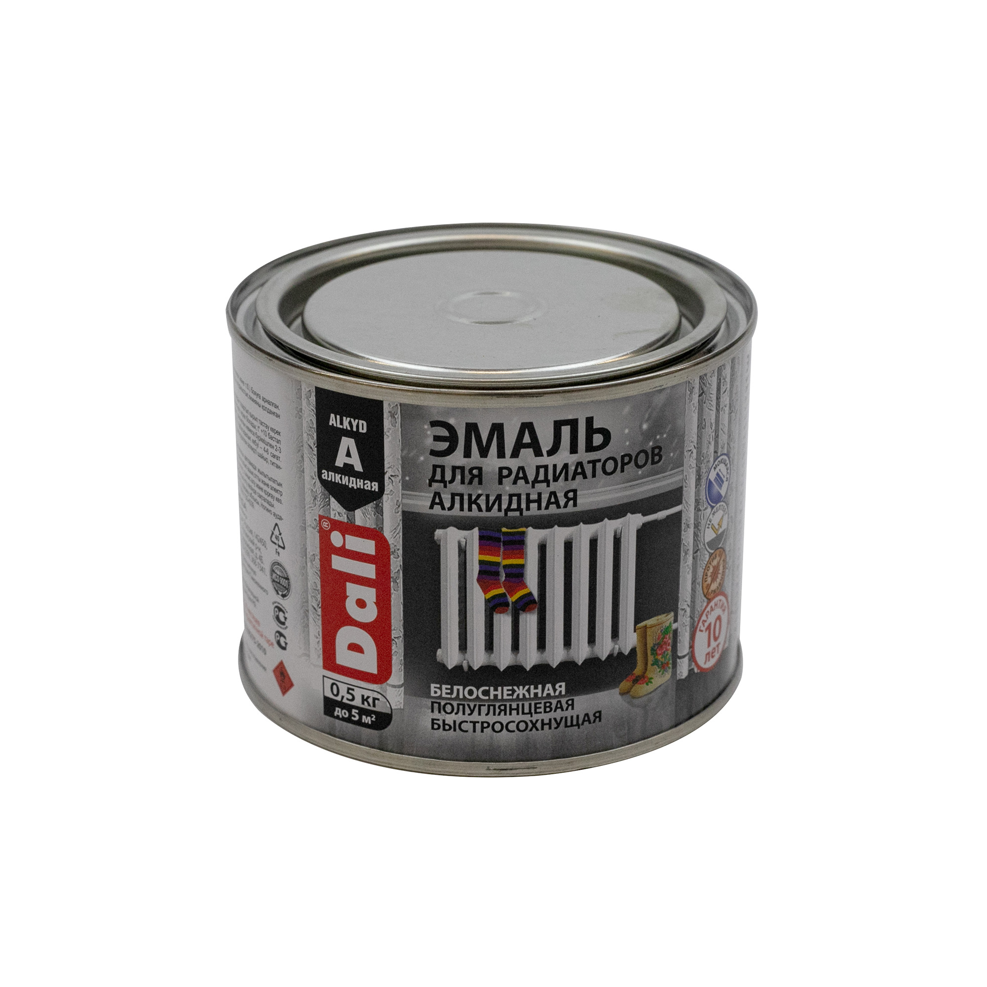 Эмаль акриловая Dali для радиаторов шелковисто-матовая белая 0,5 кг, предназначена для защитно-декоративной обработки металлических поверхностей, подверженных воздействию высоких температур. Применяется внутри помещений по новым и ранее окрашенным цветным металлам, поверхностям из оцинкованного металла и нержавеющей стали (полотенцесушители, конвекторы и др.), биметаллическим поверхностям. Допускается нанесение на теплые поверхности (до +40°С).