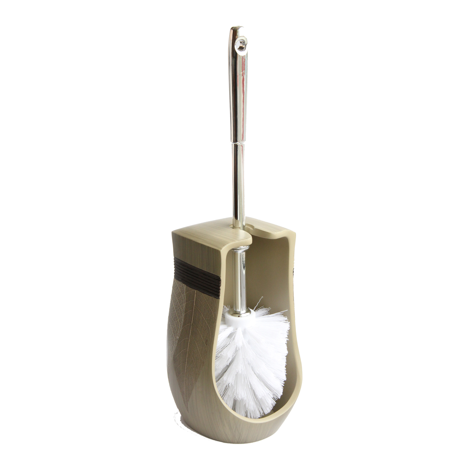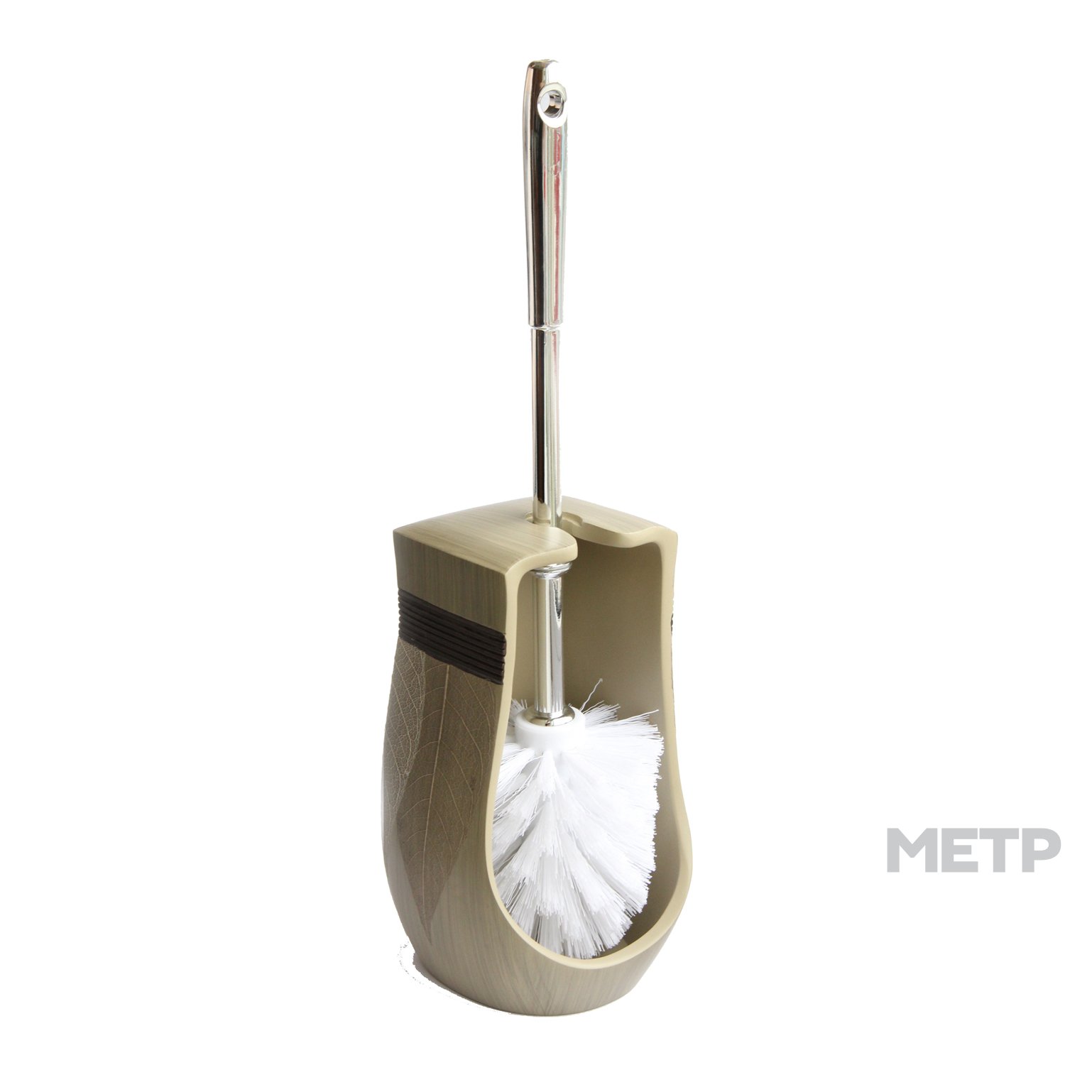 Ерш сантехнический напольный. Изделие включает в себя ерш с пластиковой ручкой с покрытием "под бронзу" и подставку из полимерный материалного материала (полирезина) с выемкой сбоку. Влагоустойчив. Щётка имеет густой жесткий ворс, обладает высокой стойкостью к стиранию.