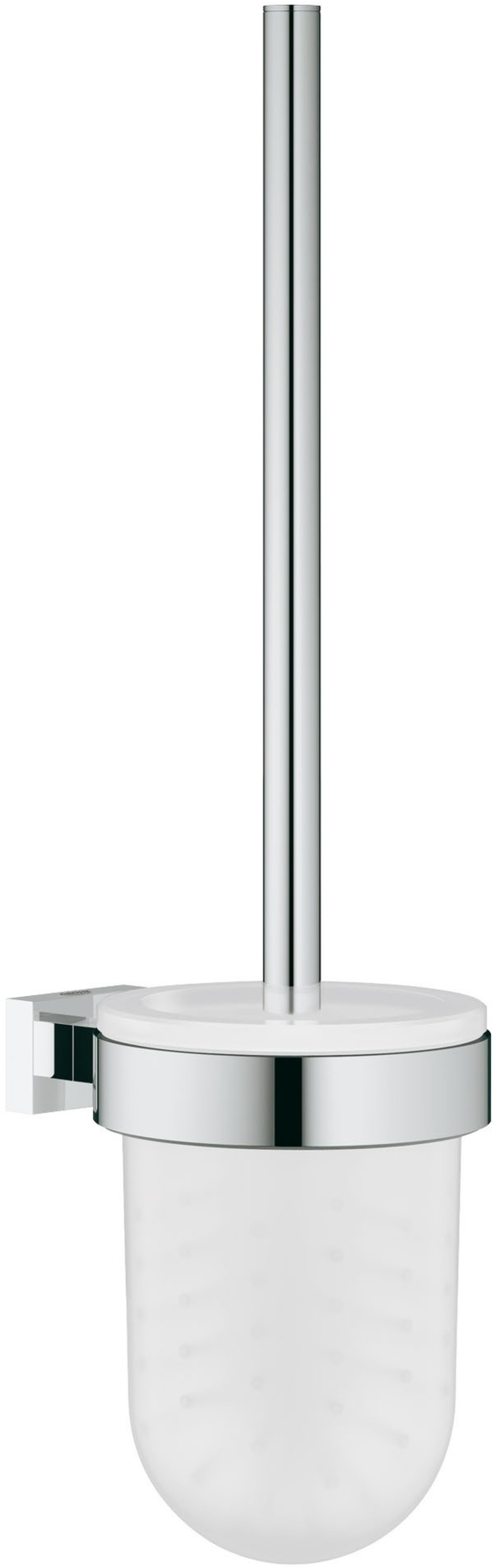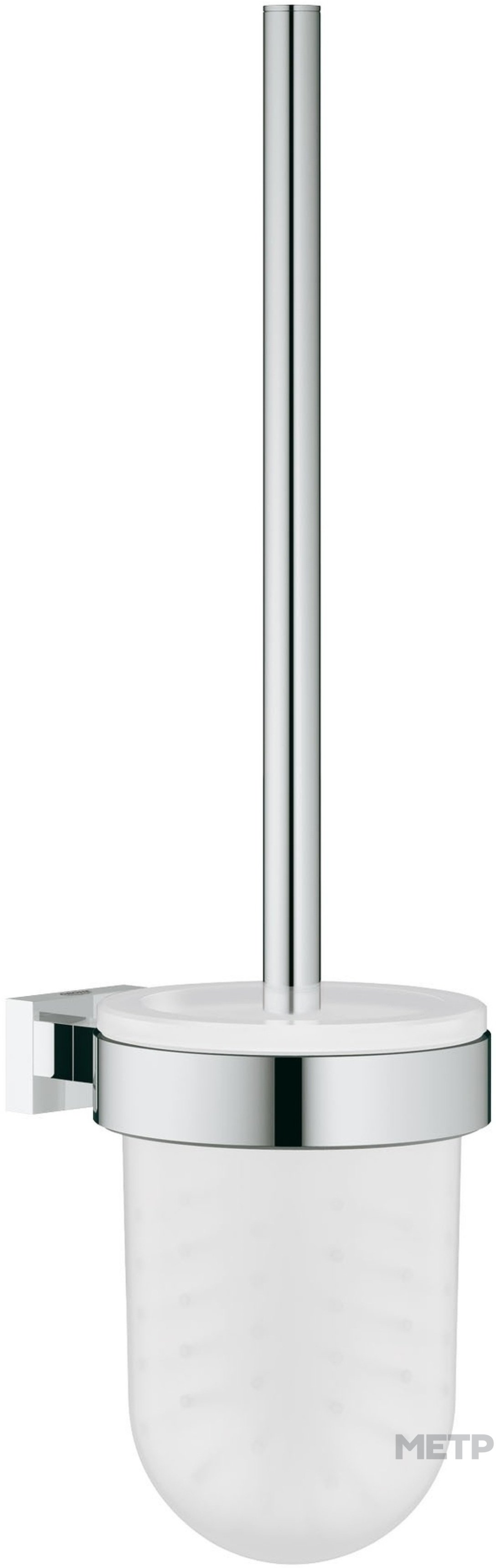Ерш сантехнический подвесной. Изделие включает в себя ерш и металлический держатель со съёмным стаканом цилиндрической формы, выполненным из матового стекла. Ерш состоит из металлической ручки и щётки, которая имеет густой жесткий ворс и обладает высокой стойкостью к стиранию. Все металлические элементы имеют хромированное покрытие. Влагоустойчив. Монтируется к стене при помощи крепления, входящего в комплект.