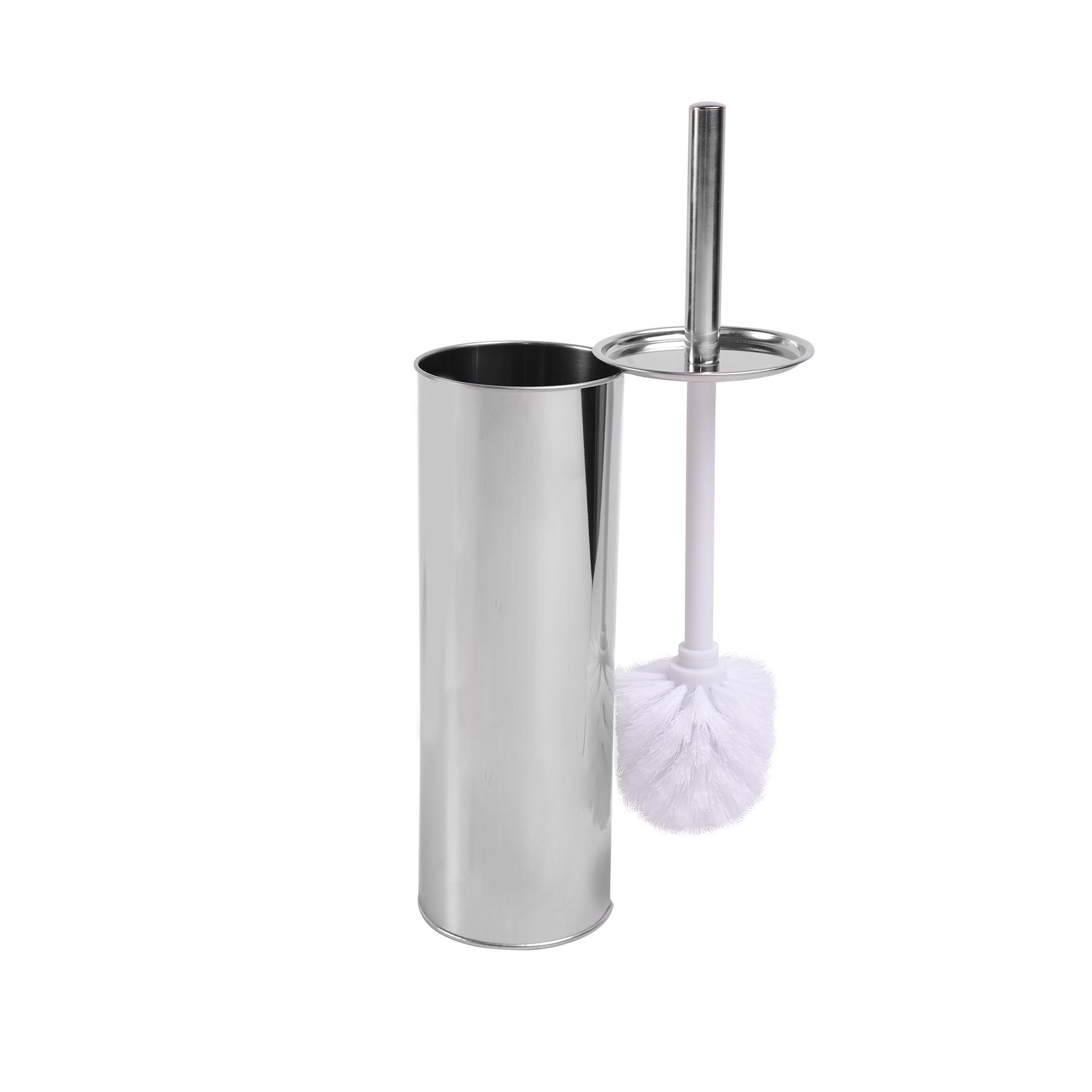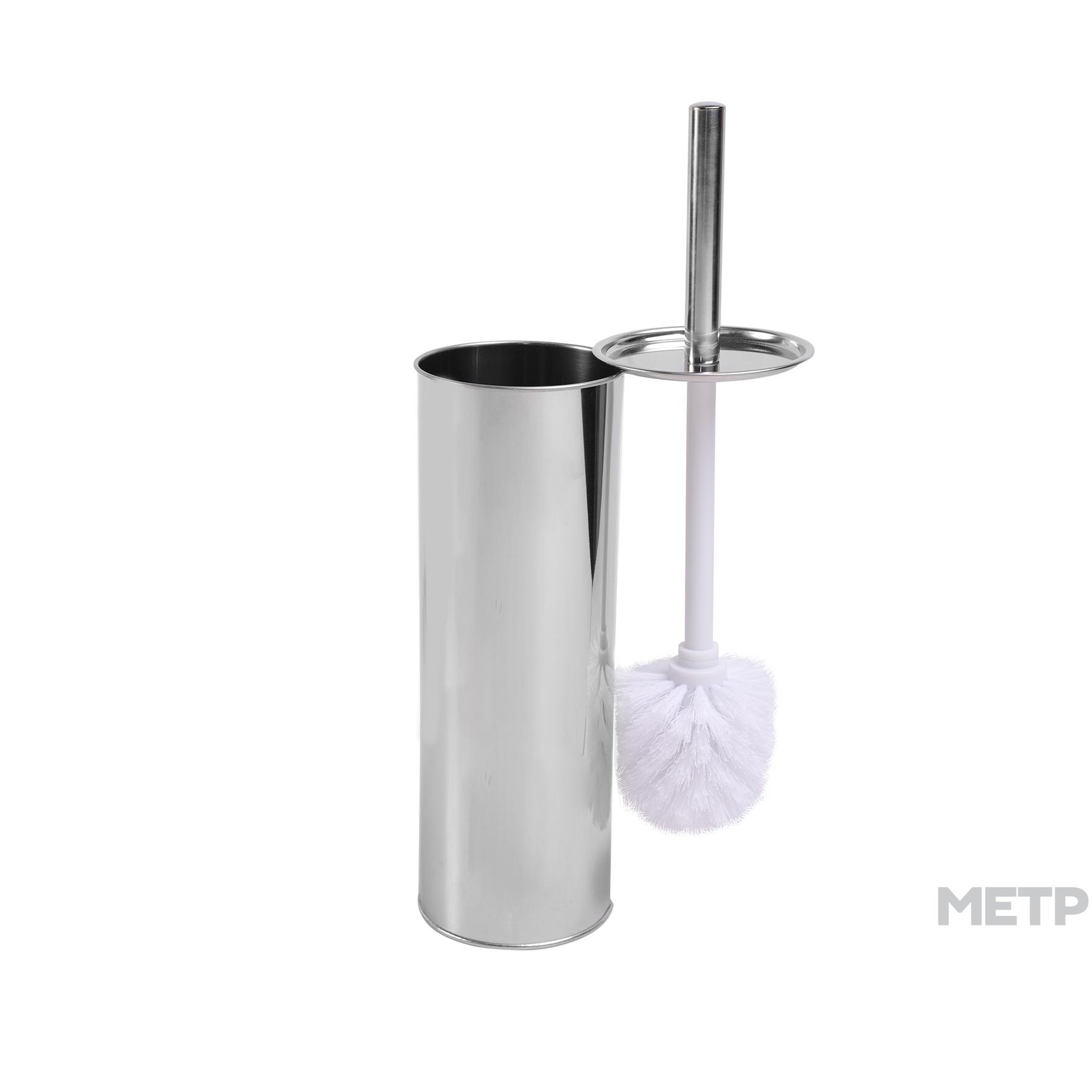 Ерш сантехнический напольный. Изделие включает в себя ерш с пластиковой ручкой и металлическую гильзу с пластиковым стаканом внутри. На ручке закреплена крышка, которая закрывает металлическую подставку. Высокая устойчивость к коррозии. Щётка имеет густой жесткий ворс, обладает высокой стойкостью к стиранию. Цвет щётки черный.