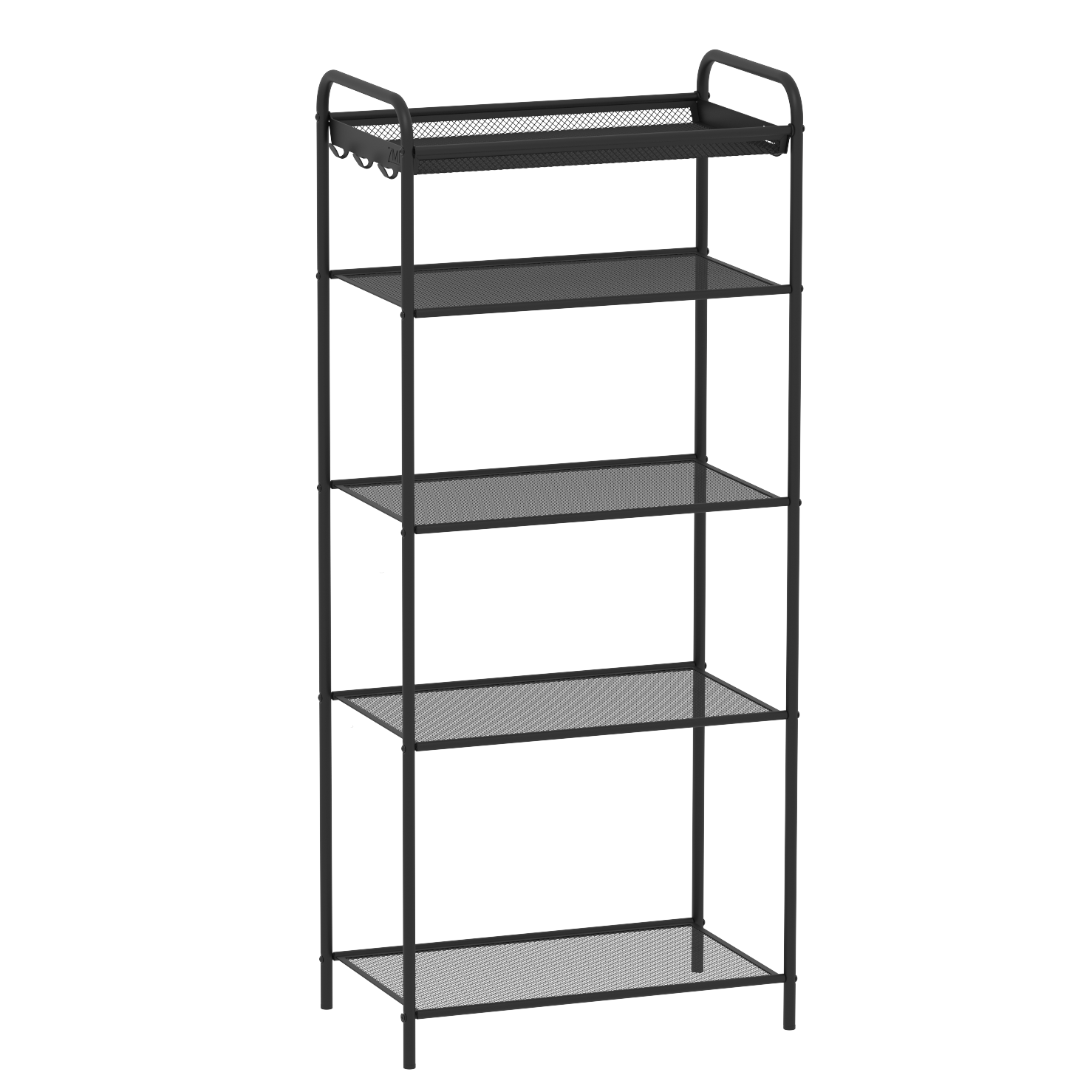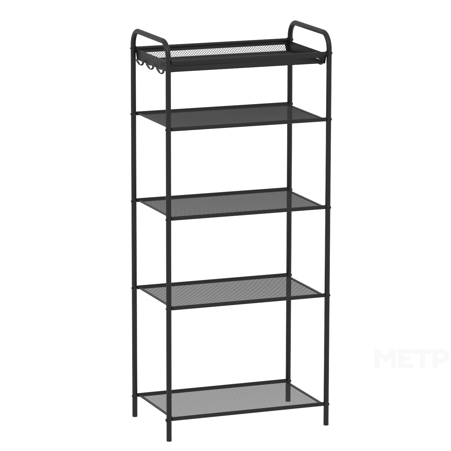 Этажерка изготовлена из прочной стали с полимерным покрытием, поэтому она крепкая, надежная и долговечная, каждая полка выдерживает нагрузку до 8 кг.