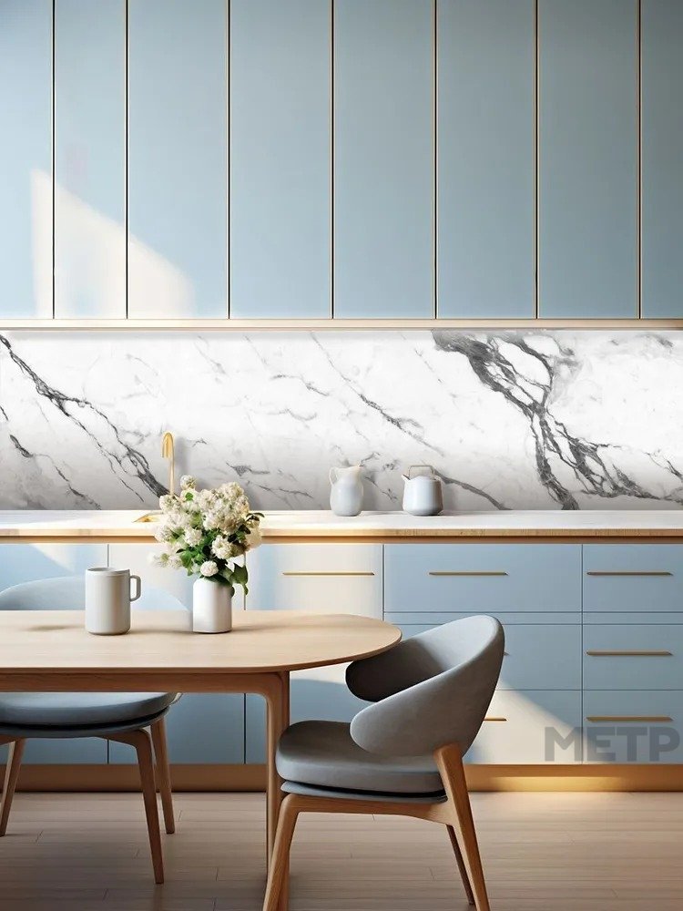 Фартук Мрамор белый 300х60 см. Стеновые панели для кухни из АБС-пластика – самый простой в установке и самый надёжный в эксплуатации материал. В производстве панелей из ABS-пластика используется точечная цветопередача, идеальный переход оттенков. Это отличный способ защитить стену над рабочей поверхностью от брызг, испарений и загрязнений.