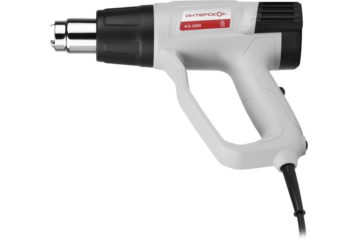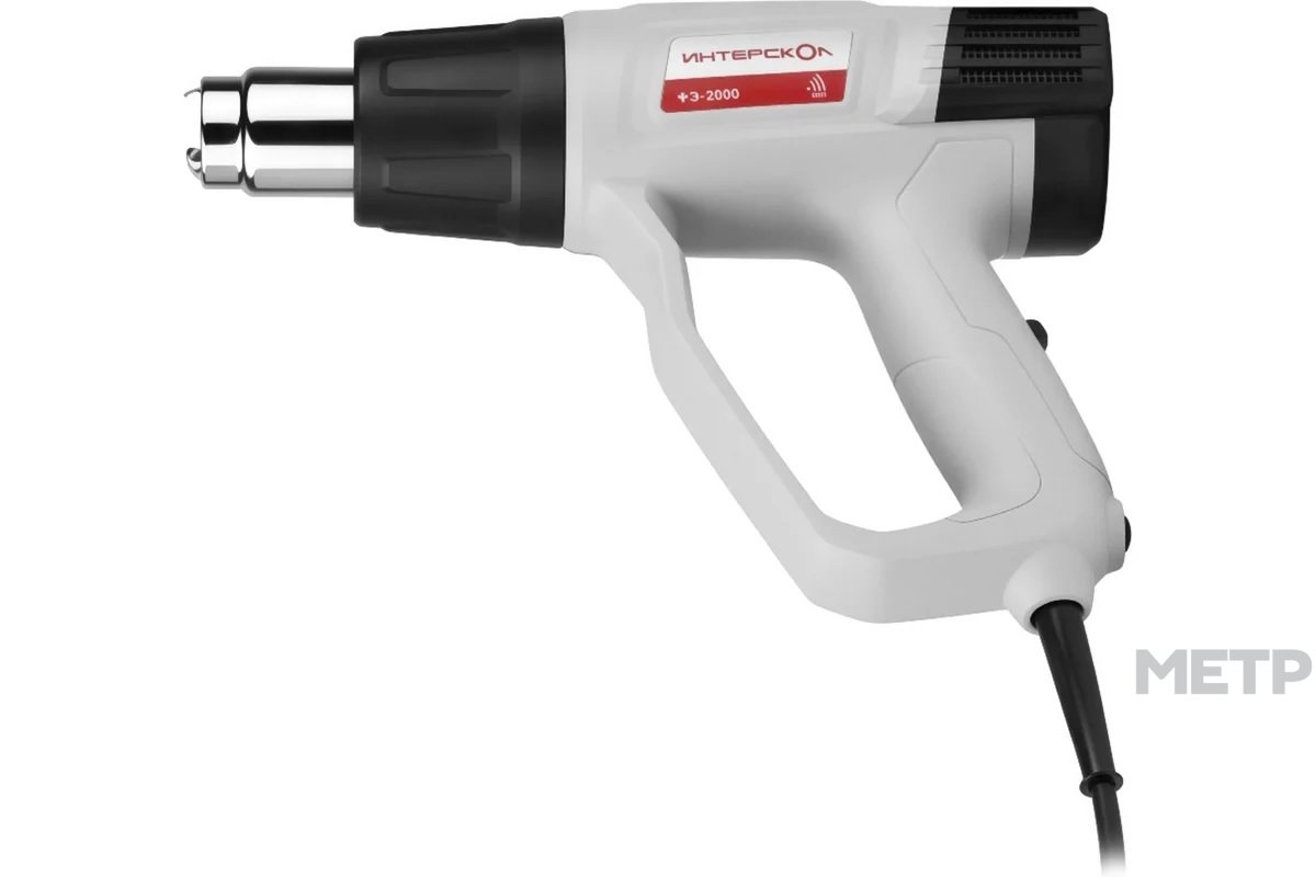 Строительный фен ИНТЕРСКОЛ ФЭ-2000 предназначен для обработки горячим воздухом поверхностей и материалов, для разогрева машин и механизмов, термического обеззараживания различных изделий, пайки и сварки пластиков, напольных покрытий, для операций, связанных с тонировкой стекол, и прочих задач. Предусмотрены два температурных режима с нагревом потока выходящего из сопла воздуха до 400°С и до 600°С, при этом его расход (выдуваемый объем) регулируется от 300 до 500 литров в минуту.