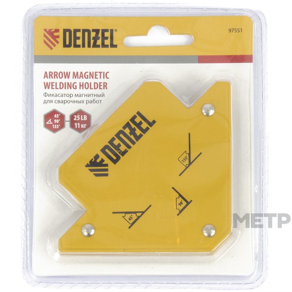 Фиксатор магнитный для сварочных работ до 23кг Denzel упрощает работу сварщика. Он позволяет производить точное выставление углов в процессе проведения сварочных работ, монтажа стальных конструкций. Выдерживает вес до 23 кг.