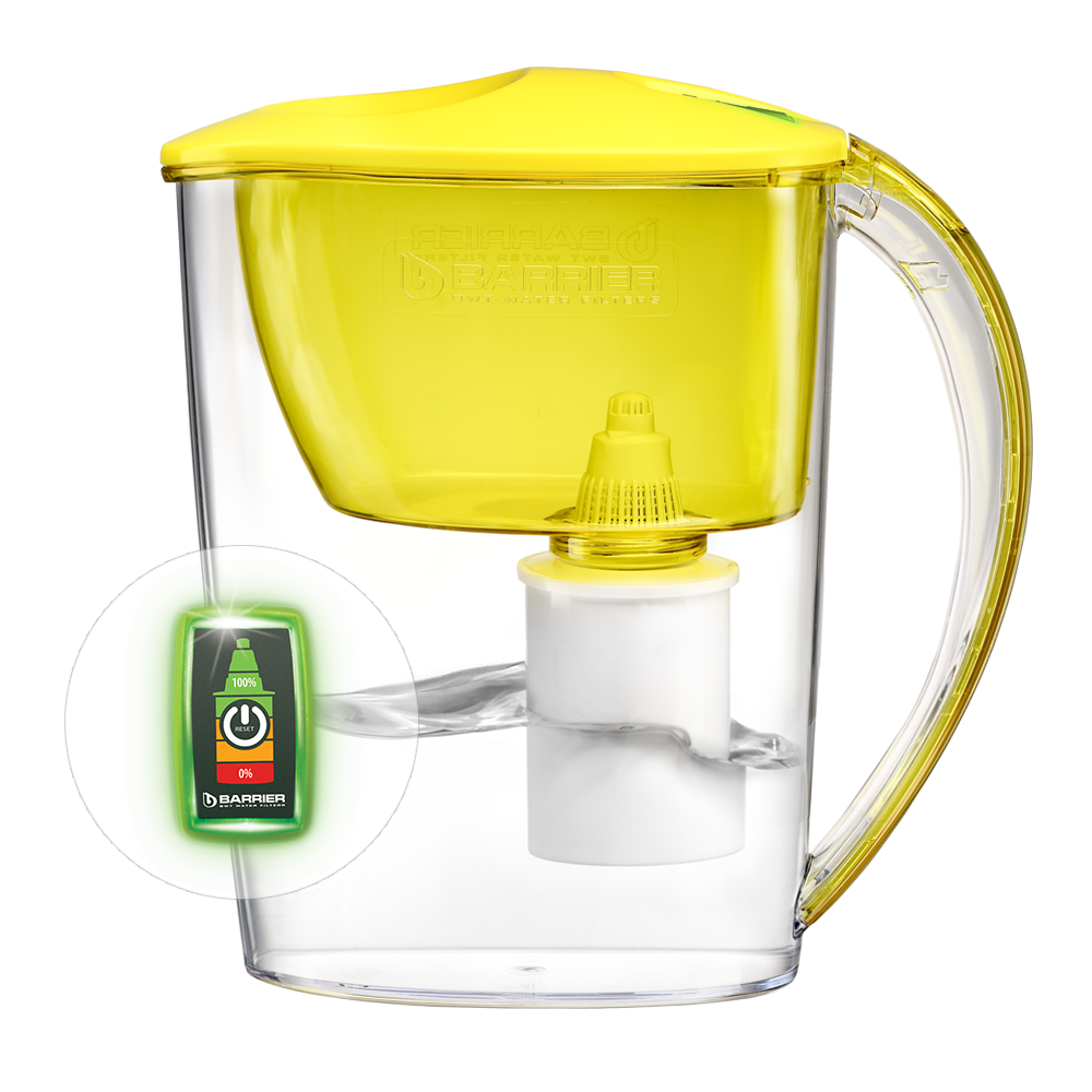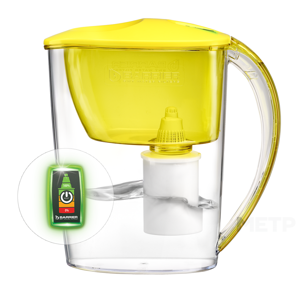 Фильтр Барьер Фит 2,5 л цвета бодрящий лимон бережно очищает воду от неприятного запаха, примесей и тяжелых металлов. В кувшин встроен механический индикатор ресурса, что позволит отследить дату установки и смены кассеты, что позволит вовремя ее заменить.