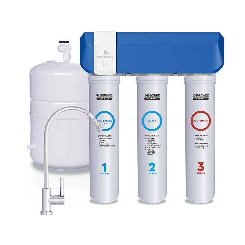 Первая трёхступенчатая обратноосмотическая система БАРЬЕР, по эффективности соответствующая классическому 5-ступенчатому осмосу.