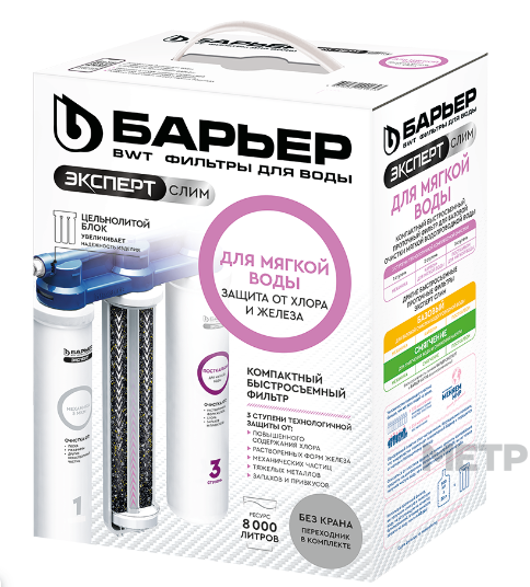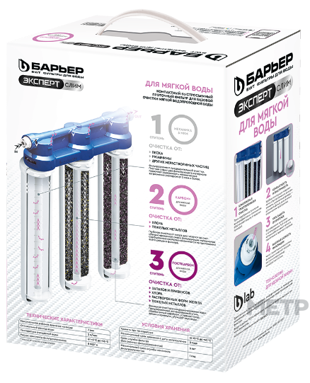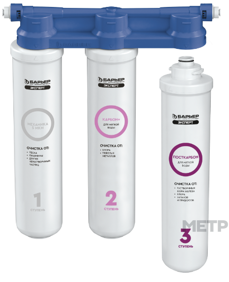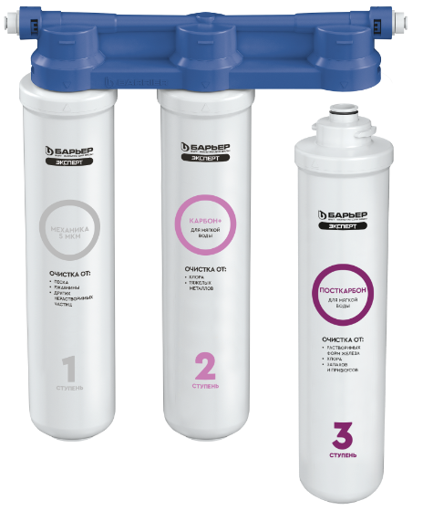 3 ступень — БАРЬЕР ЭКСПЕРТ Посткарбон для мягкой воды. Очищает от растворенных форм железа, а также устраняет неприятные привкусы и остаточный хлор.