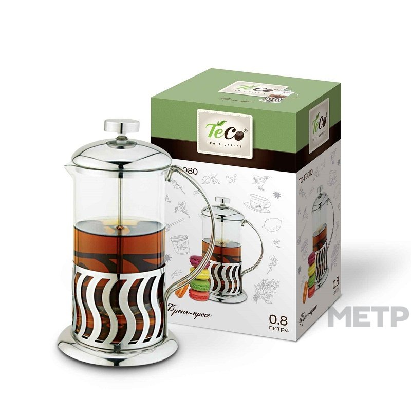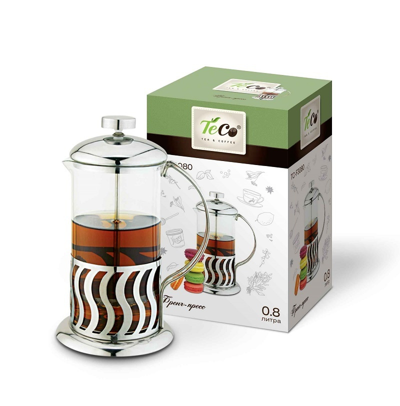 Френч-пресс 800 мл выполнен из нержавеющей стали, имеется стеклянная колба для заваривания напитка. Френч-пресс имеет отверстие в верхней части корпуса для удобного наполнения кружек. Подходит для мытья в посудомоечной машине. Страна изготовитель Китай.