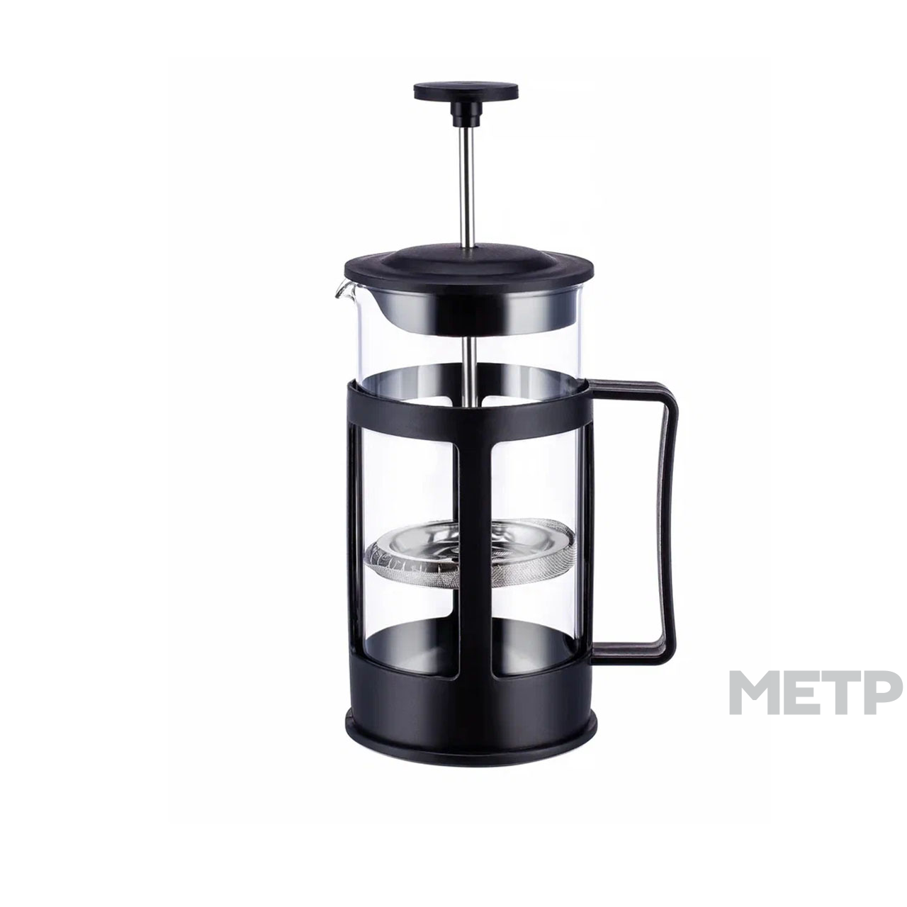 Френч-пресс 350мл выполнен из нержавеющей стали, имеется стеклянная колба для заваривания напитка. Френч-пресс имеет отверстие в верхней части корпуса для удобного наполнения кружек. Подходит для мытья в посудомоечной машине. Страна изготовитель Китай.