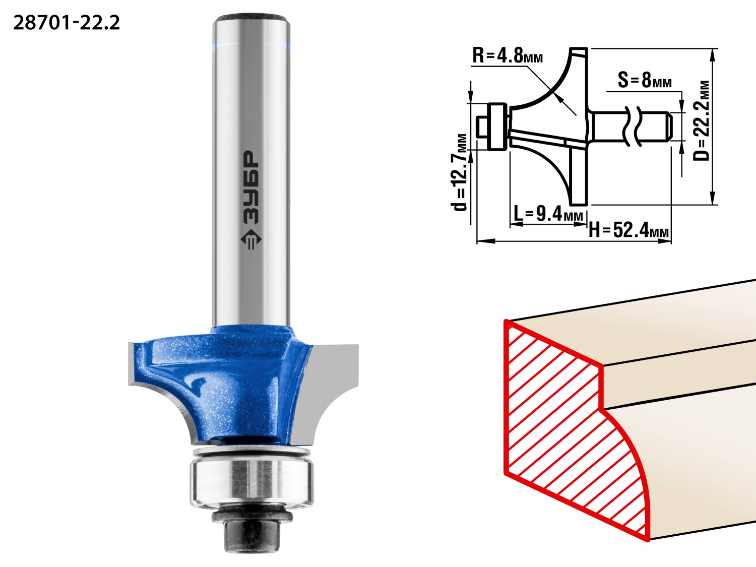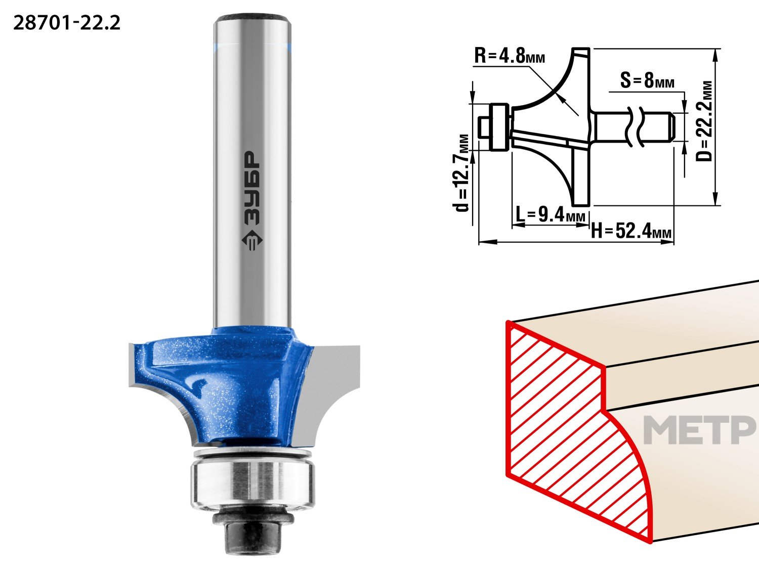 Фреза кромочная калевочная №1 22,2х9,4мм радиус 4,8мм предназначена для фрезерных станков и ручных фрезеров. Применяется при обработке древесины. Фреза подходит для скругления кромок.