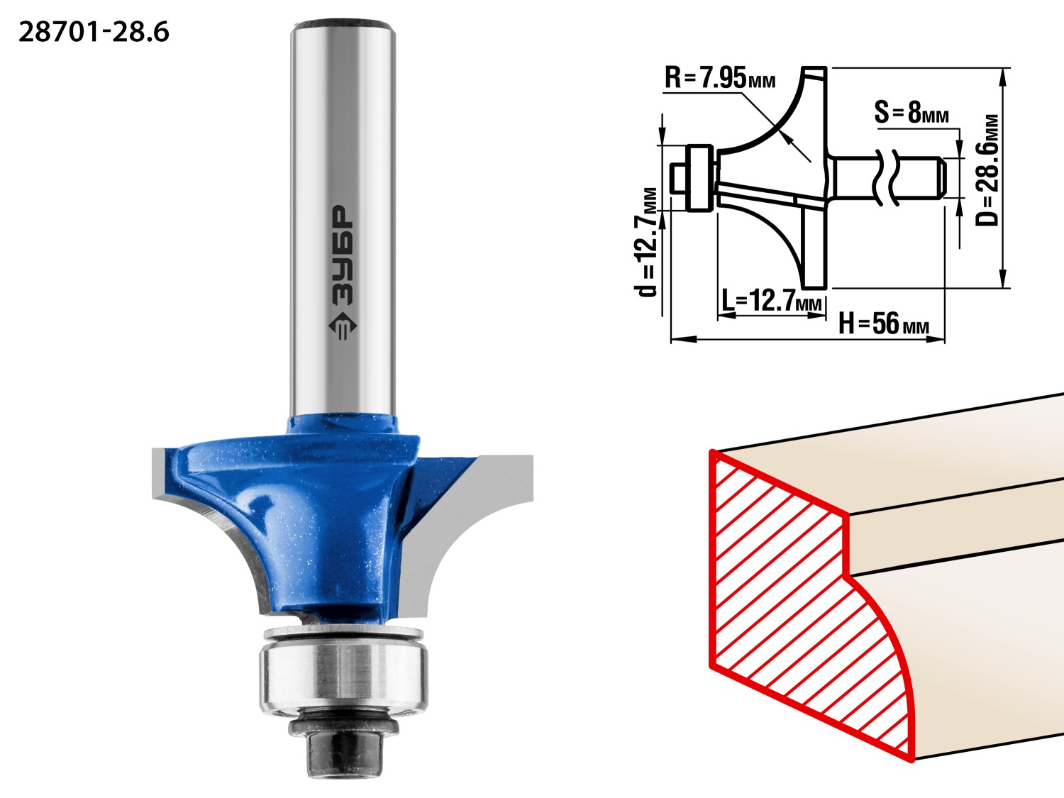 Фреза кромочная калевочная №1 28,6х12,7мм радиус 8мм предназначена для ручных фрезеров и фрезерных станков. Применяется для скругления кромок при обработке столешниц, полок, шкафов и прочих работ с разнообразными видами древесины.