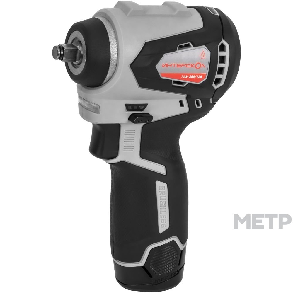 Гайковёрт аккумуляторный ударный ГАУ-250/12ВЭ 12В Li-Ion 2Ач 250Hм Интерскол - это гайковёрт с тангенциальным ударом. Основной вид оснастки - биты и головки, а также свёрла, в том числе и перьевые. Компактные размеры помогают работать в труднодоступных местах, например при каркасном домостроении, сервисное обслуживание, сервисные центры, монтаж и демонтаж металлоконструкций.