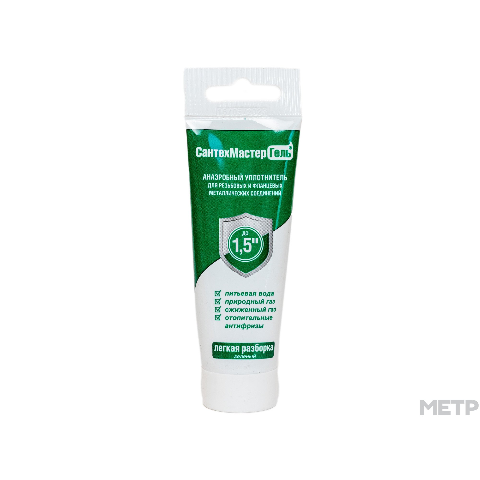 Гель СантехМастер (зеленый; тюбик 35 гр; с еврослотом) 04045 - это резьбовой герметик для металлических соединений, созданный для легкого демонтажа соединений, которые располагаются в тяжело доступных местах, где невозможно использовать иные уплотнительные материалы. Он разработан для быстрой и качественной герметизации металлических фланцевых и резьбовых соединений.