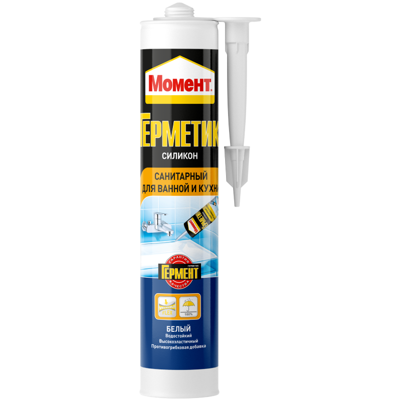 Герметик Момент силиконовый для ванны и кухни белый 280 мл, - высококачественный однокомпонентный герметик для герметизации и заполнения швов и стыков в помещениях с повышенной влажностью.