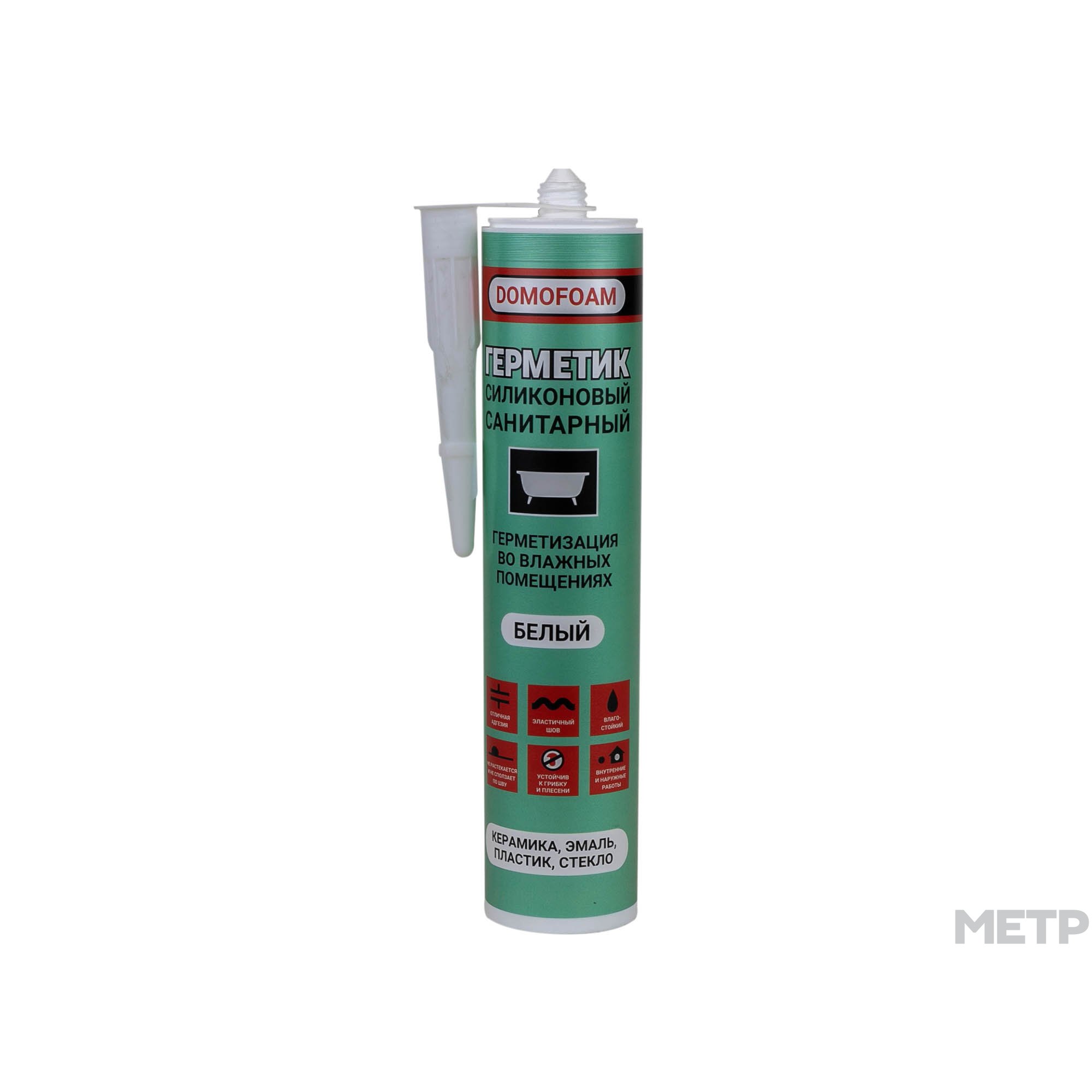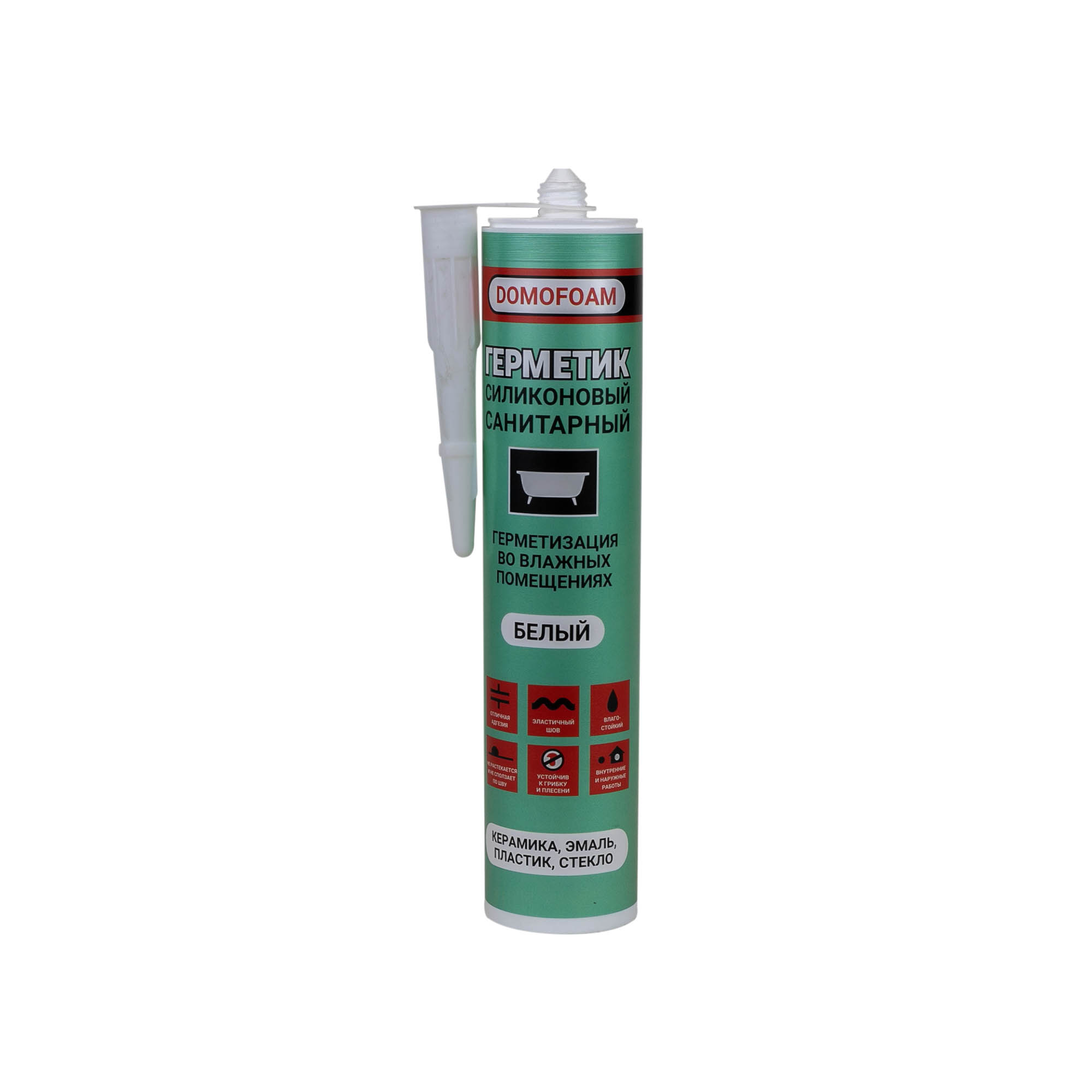 Герметик DOMOFOAM силиконовый санитарный, белый, 260 мл используется при ремонтно-строительных работах во влажных помещениях. Продукт предназначен для герметизации швов в ванной, бассейне, туалете, сауне, душевой кабине или кухне. В состав входят антибактериальные добавки предотвращающие образование плесени и грибка. После высыхания образуется эластичный водостойкий шов.