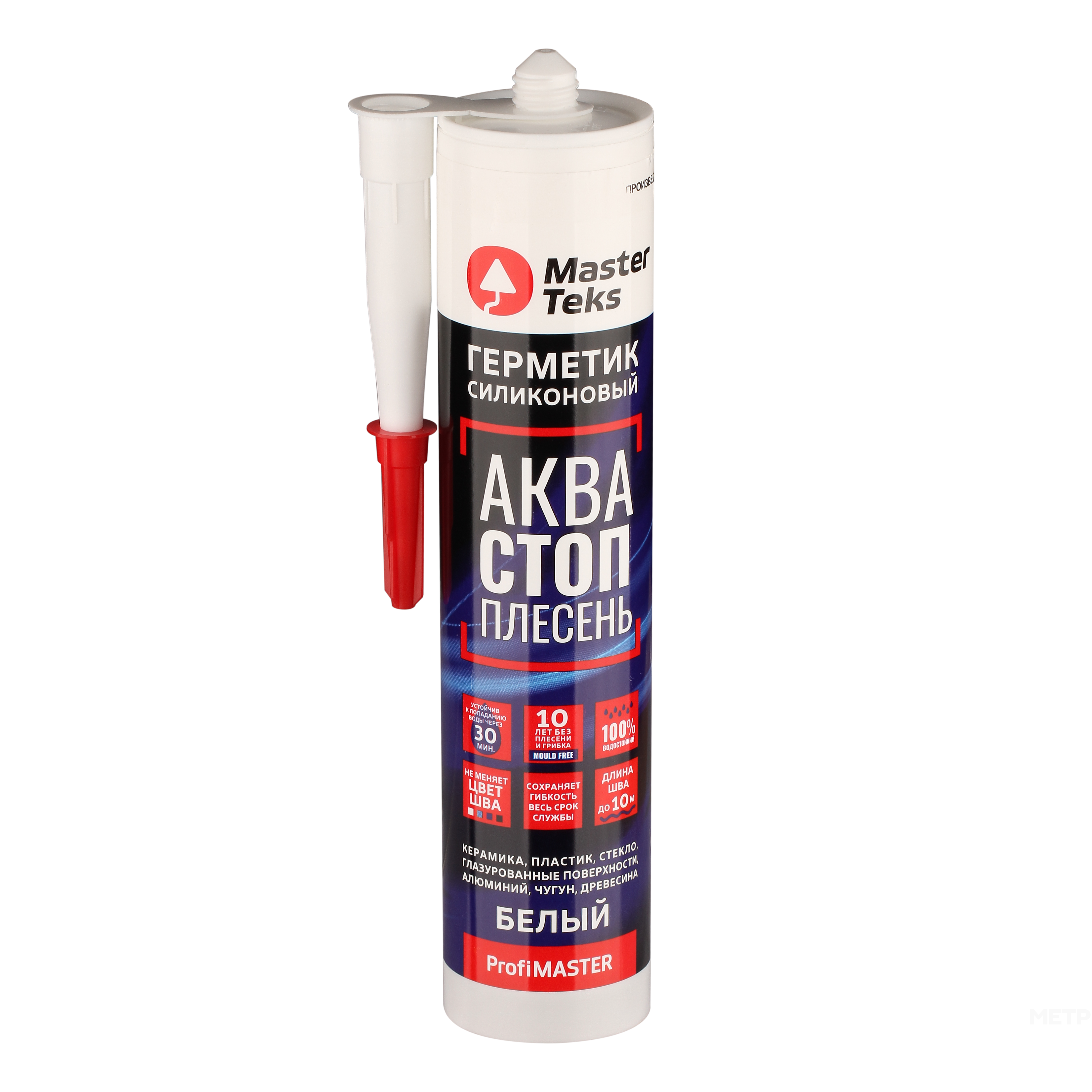 Высокотехнологичный однокомпонентный силиконовый герметик ProfiMaster акваСТОПплесень белый 280 мл кислотного типа, содержащий антисептические средства, препятствующие образованию грибка и плесени и позволяющие применение в помещениях с повышенной влажностью. Отличается долговечностью и высокой прочностью.