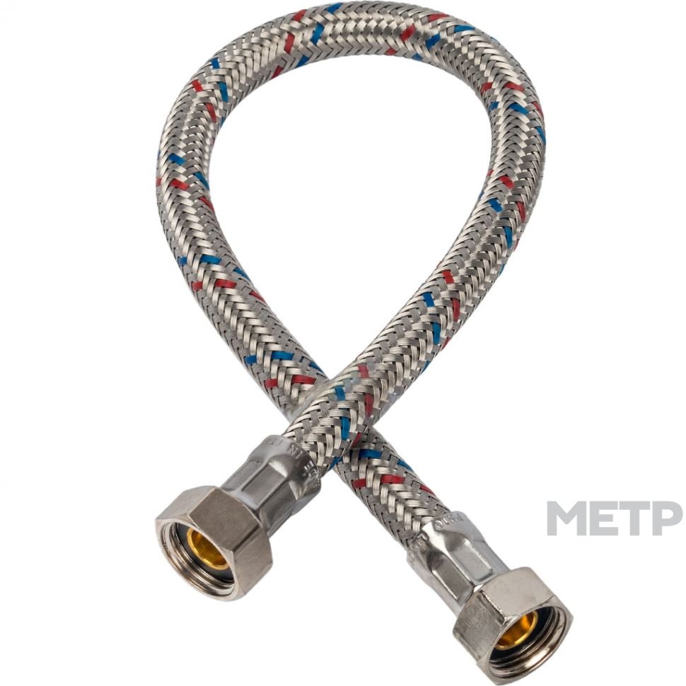 Гибкая подводка представляет собой гибкий шланг, внутренняя трубка которого изготовлена из этилен-пропиленового каучука (EPDM), покрытого оплеткой из нейлона с поливинилхлоридным (ПВХ) покрытием. Накидная гайка и обжимные гильзы выполнены из нержавеющей стали, а штуцер и ниппель из латуни. Материал, используемый в оплетке, блокирует блуждающие токи и не подвержен коррозии. Двойное полимерное покрытие увеличивает механическую стойкость подводки. Подходит под любую среду эксплуатации, в том числе с повышенной влажностью. Подходит как для горячей, так и для холодной воды