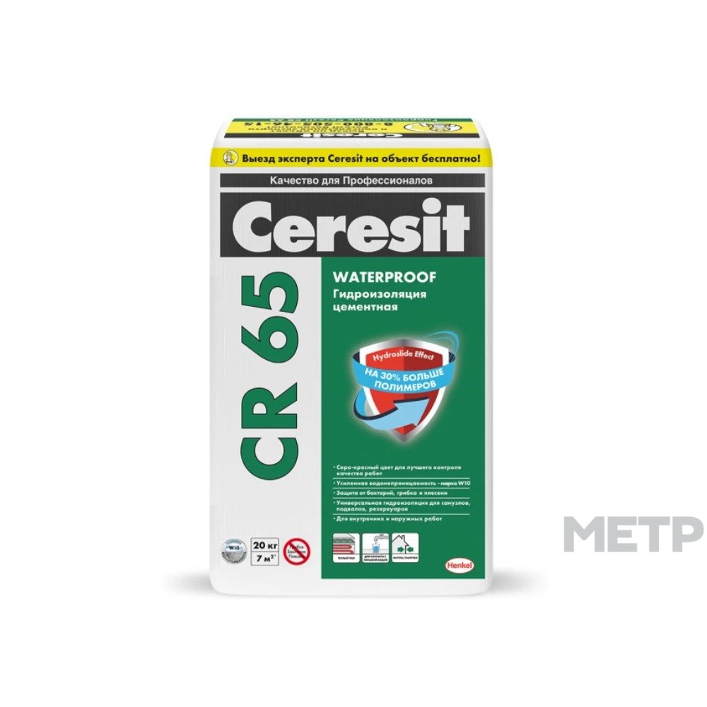 Гидроизолирующая масса CR 65 20 кг предназначена для устройства водонепроницаемых покрытий на недеформирующихся незасоленных минеральных не содержащих гипс основаниях на полах и стенах внутри и снаружи зданий. Применяется для наружной и внутренней гидроизоляции заглубленных и подземных сооружений, для изоляции небольших монолитных ванн крытых бассейнов и резервуаров для воды, для гидроизоляции влажных помещений, в т.ч. системе «теплый пол» под плиточную облицовку, для защиты градирен, гидротехнических и очистных сооружений, тоннелей и других бетонных конструкций от увлажнения и морозного разрушения, для заполнения шпуров и пустот при инъектировании кладок старых зданий. Обладает высокой паропроницаемостью.