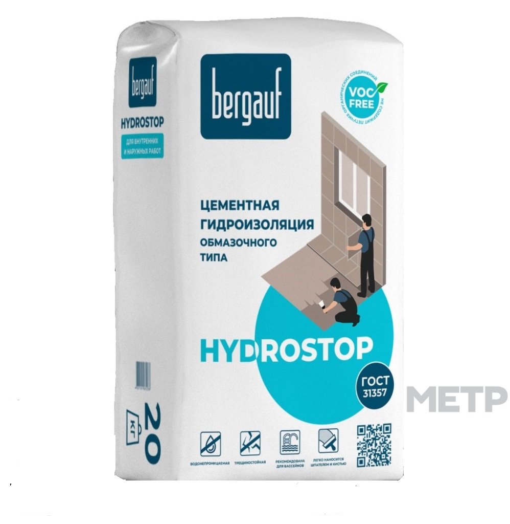 Гидроизоляция Hydrostop 20 кг на цементной основе применяется на таких типах оснований как: кирпичная кладка; бетон, железобетон; цементная стяжка; цементная, цементно-известковая штукатурка. Гидроизоляция предназначена для вертикальных и горизонтальных недеформирующихся конструкций внутри и снаружи зданий. Применяется на всех типах поверхностей (стены, пол, потолок), с целью защиты основания от воздействия воды в таких сферах, как: гидроизоляция ванных комнат, душевых, бассейнов глубиной до 5 м, фонтанов, резервуаров с водой, искусственных водоемов, подвалов и цоколей, фундаментов (в том числе подземных частей), балконов, террас и т.д.