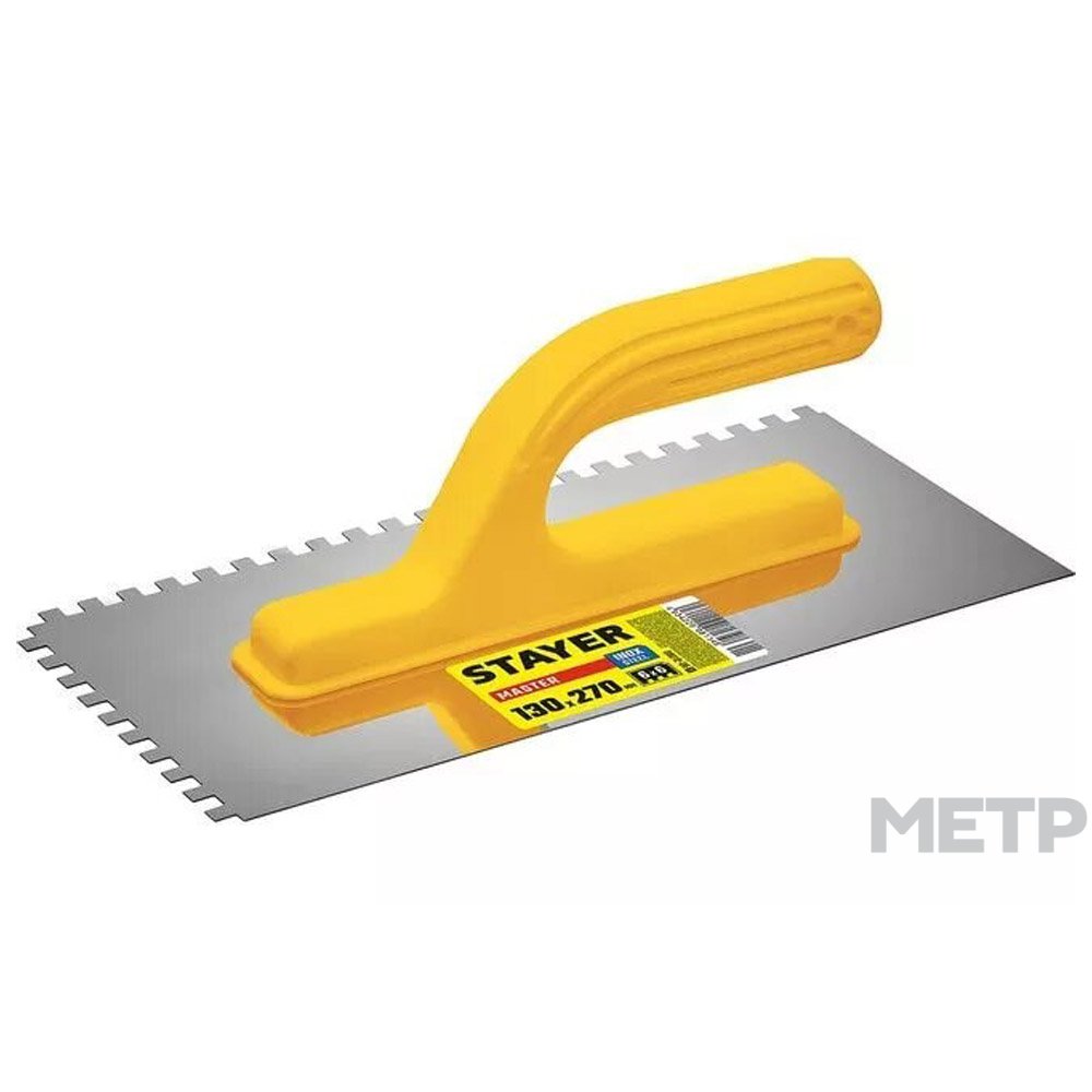 Гладилка зубчатая 270х130 мм сталь – важное приспособление для каждого мастера по укладке плитки. С его помощью можно быстро нанести раствор тонким слоем, распределив его по всей выделенной поверхности. Рабочему потребуется меньше времени на выравнивание плитки и удаление излишков смеси.