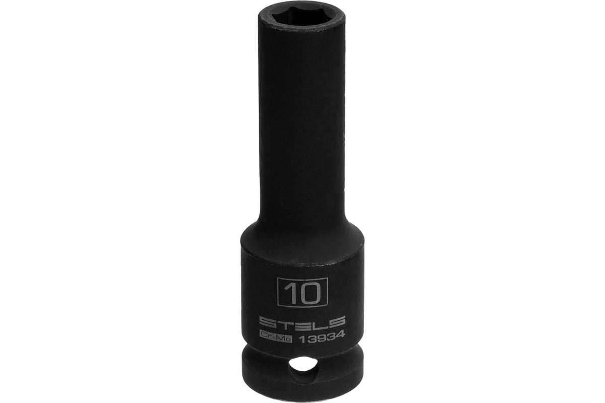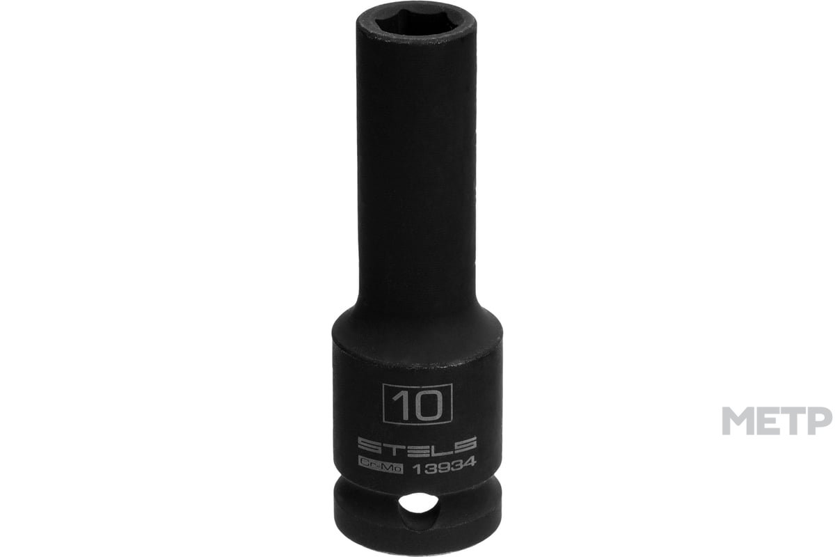 Ударная удлиненная шестигранная головка Stels из стали CrMo, с присоединительным квадратом 1/2 дюйма, предназначена для монтажа и демонтажа резьбовых соединений с помощью пневматического или электрического гайковерта. Подходит для профессионального применения на строительной площадке и в автомастерской, т.к. выдерживает интенсивную эксплуатацию с высокими динамическими нагрузками. Головка имеет удлиненный профиль, что облегчает работу в труднодоступных местах.