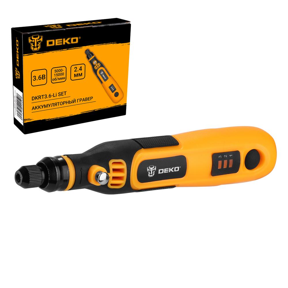 ГраверDKRT3.6-Li SET DEKO работает от Li-Ion аккумулятора. Поставляется в кейсе. Используется для широкого круга задач: резка, полировка, абразивная обработка, гравирование, шлифование и чистка. Цанговый патрон надежно фиксирует оснастку. Оснасткой для гравера DEKO DKRT3.6-Li SET являются насадки из различных материалов, разной формы и назначения. В комплекте 24 насадки. Удобство эксплуатации данного устройство обеспечивается благодаря зауженной шейке с прорезиненным покрытием. Прибор можно держать в руке как карандаш. Кнопка блокировки вала обеспечивает удобную замену оснастки.Кабель с USB разъемом позволяет производить зарядку от совместимых устройств.