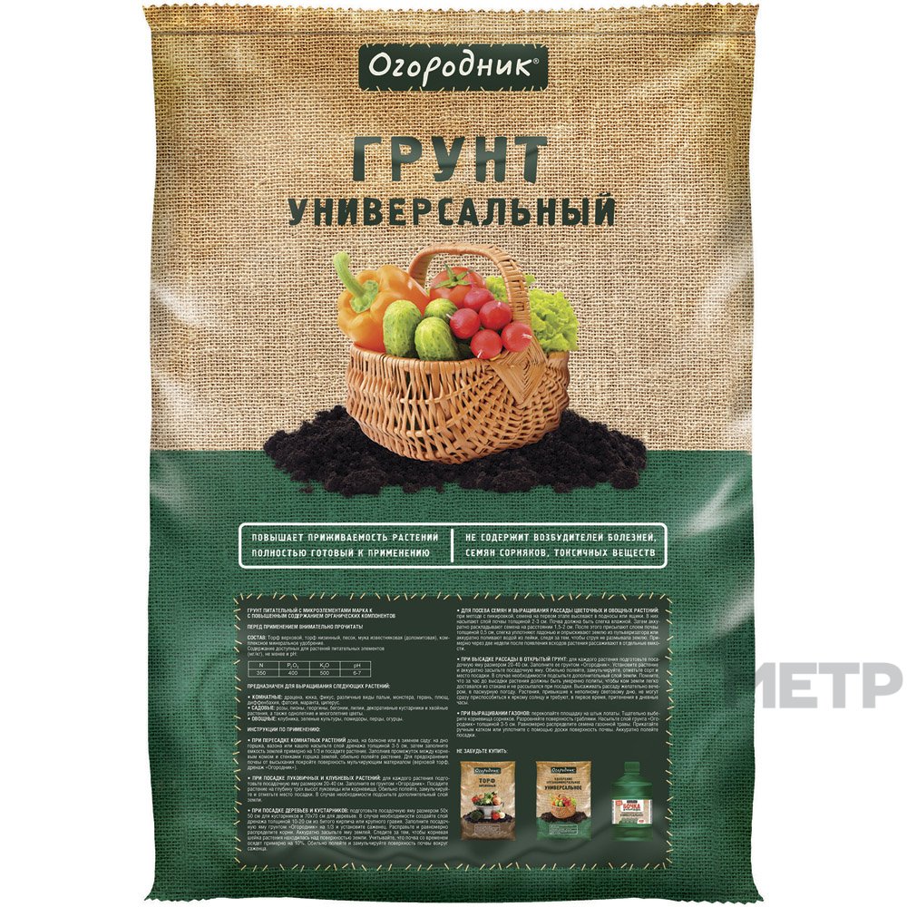 Грунт универсальный Огородник (40 л) – используется в весенне-летний период, применим к рассаде. Смесь с хорошим балансом минералов и органики, подходит для разных видов растений, используется на предварительном этапе, что дает возможность рассаде окрепнуть, стать сильнее.