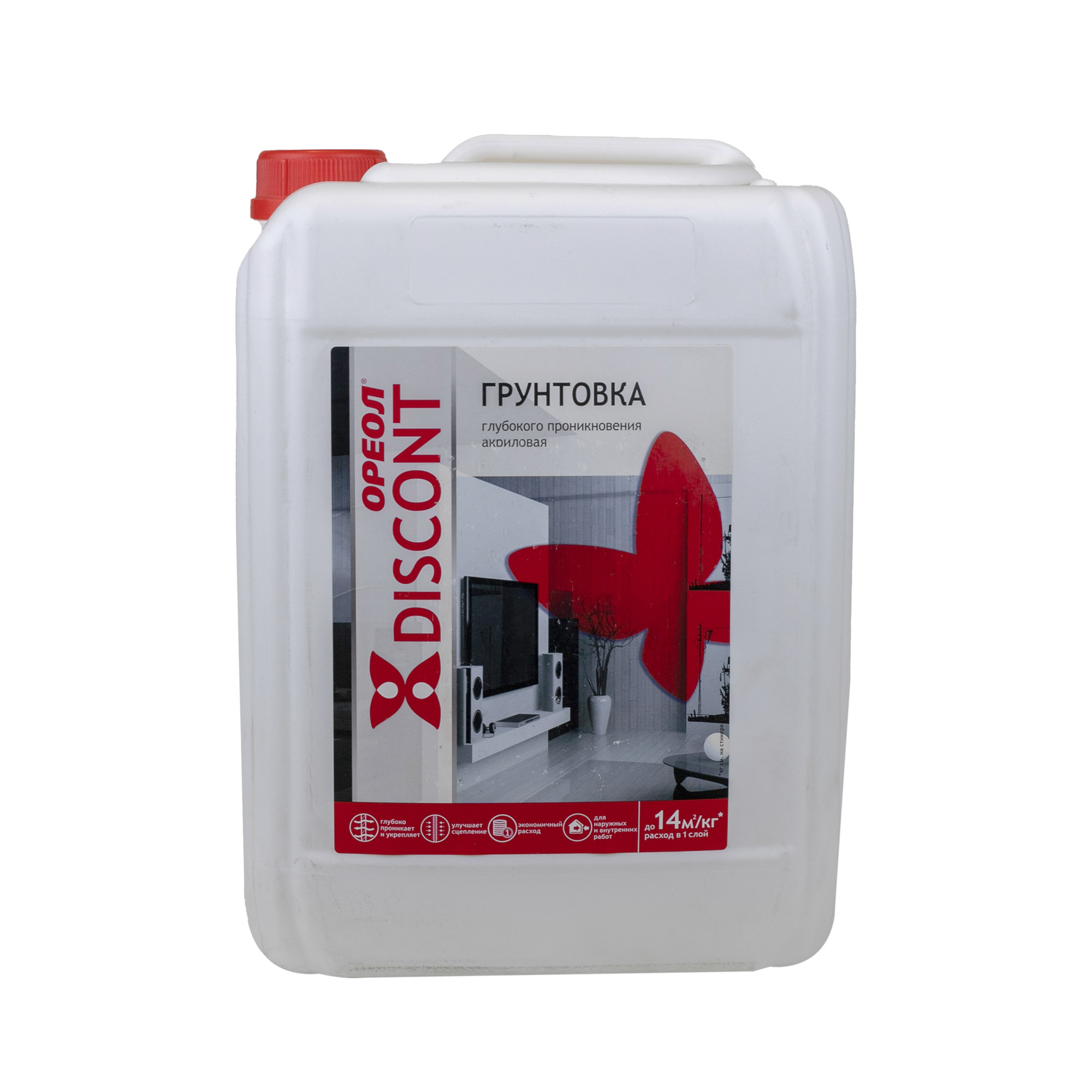 Грунтовка ВД Ореол Дисконт глубокого проникновения 10 кг предназначена для пропитки и грунтования поверхностей из гипсолита, гипсокартона, бетона, кирпича, асбоцемента, древесины и пенопласта, оштукатуренных, ранее окрашенных, но не глянцевых поверхностей, других пористых поверхностей (кроме металлических), эксплуатируемых снаружи и внутри помещений.
