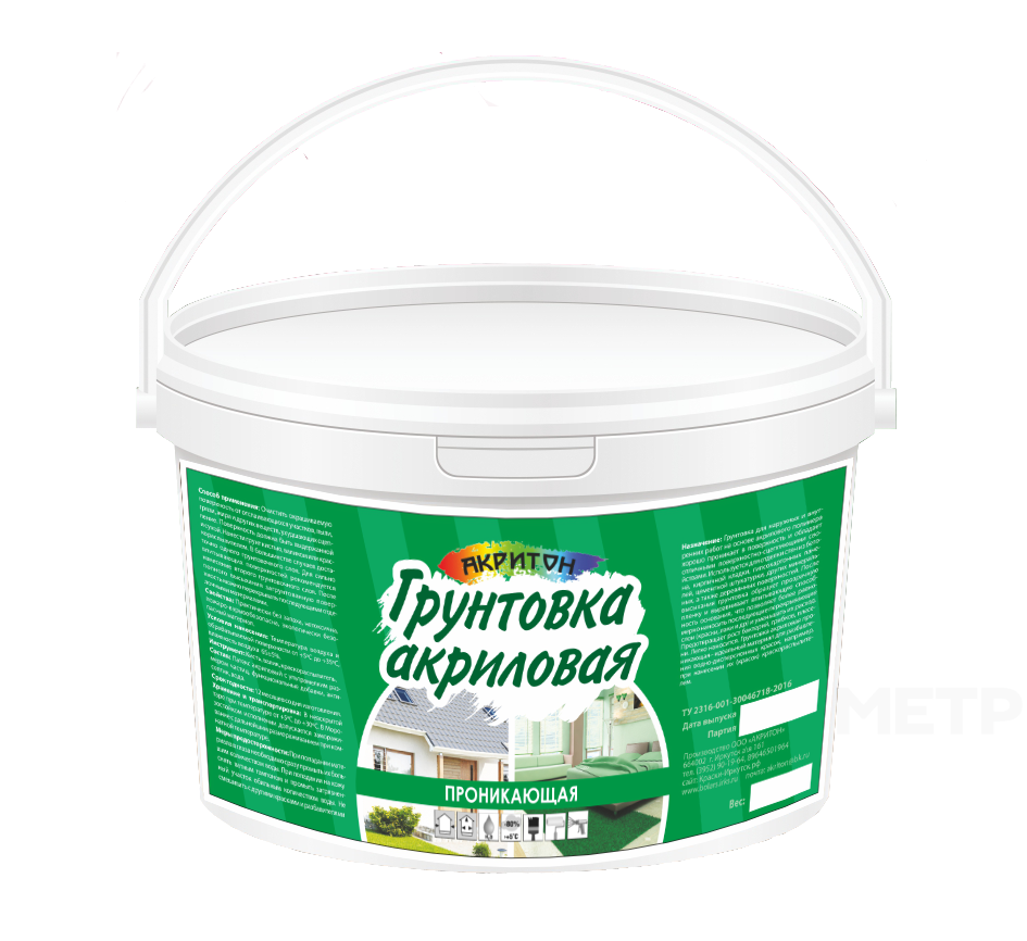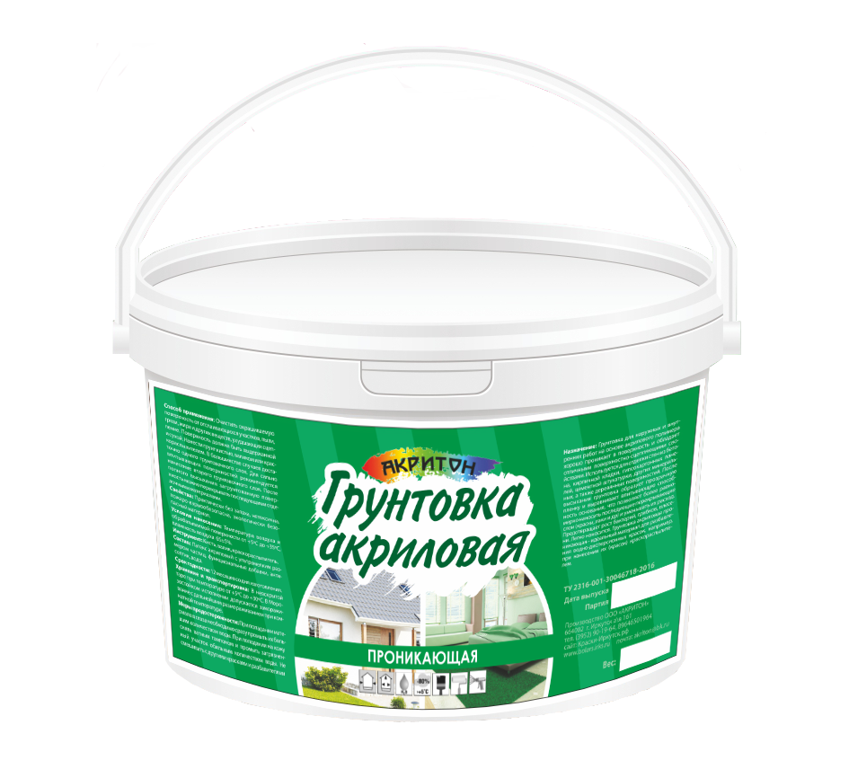 Грунтовка акриловая проникающая Эконом 5 л для наружных и внутренних работ на основе акрилового полимера хорошо проникает в поверхность и обладает отличными поверхностно-сцепляющими свойствами. Используется для отделки стен из бетона, кирпичной кладки, гипсокартонных панелей, цементной штукатурки, других минеральных, а также деревянных поверхностей. После высыхания грунтовка образует прозрачную пленку и выравнивает впитывающую способность основания, что позволяет более равномерно наносить последующие перекрывающие слои (краски, лаки и др) и уменьшать их расход. Предотвращает рост бактерий, грибков, плесени. Легко наносится. Грунтовка акриловая проникающая – идеальный материал для разбавления водно-дисперсионных красок, например, при нанесении их (красок) краскораспылителем.