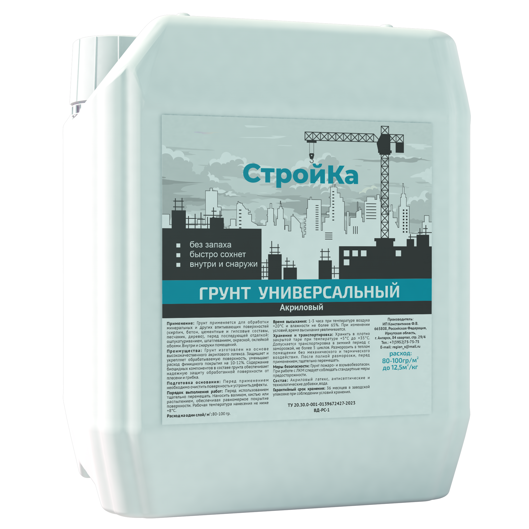 Грунт универсальный СТРОЙКА 5 кг изготовлен на основе высококачественного акрилового латекса. Защищает и укпрепляет обрабатываемую поверхность. Содержит биоцидные компоненты в составе. Применяется для обработки минеральных и других впитывающих поверхностей (кирпич, бетон, цементные и гипсовые составы, песчаник, дерево), перед последующей отделкой: оштукатуриванием, шпатлеванием, окраской, оклейкой обоями. Внутри и снаружи помещений.