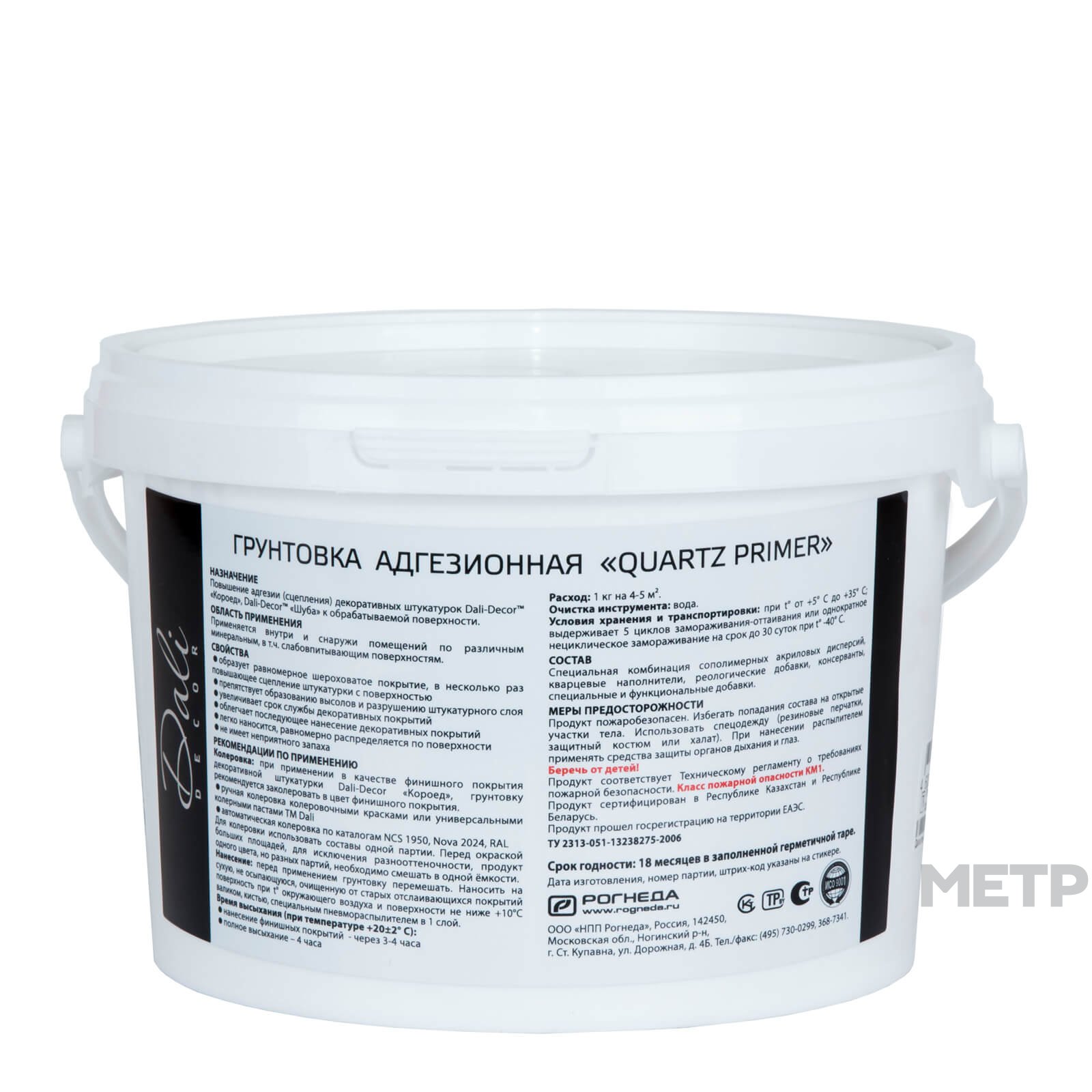 Грунтовка Dali-DECOR QUARTZ PRIMER, адгезионная акриловая 3,5 кг повышает адгезию (сцепление) декоративных штукатурок Dali-Decor. Применяется внутри и снаружи помещений по различным минеральным, в т.ч. слабовпитывающим поверхностям. Преимущества: разработана специально для толстослойных покрытий: в несколько раз повышает сцепление штукатурки с поверхностью; легко наносится, равномерно распределяется по поверхности; не имеет неприятного запаха.