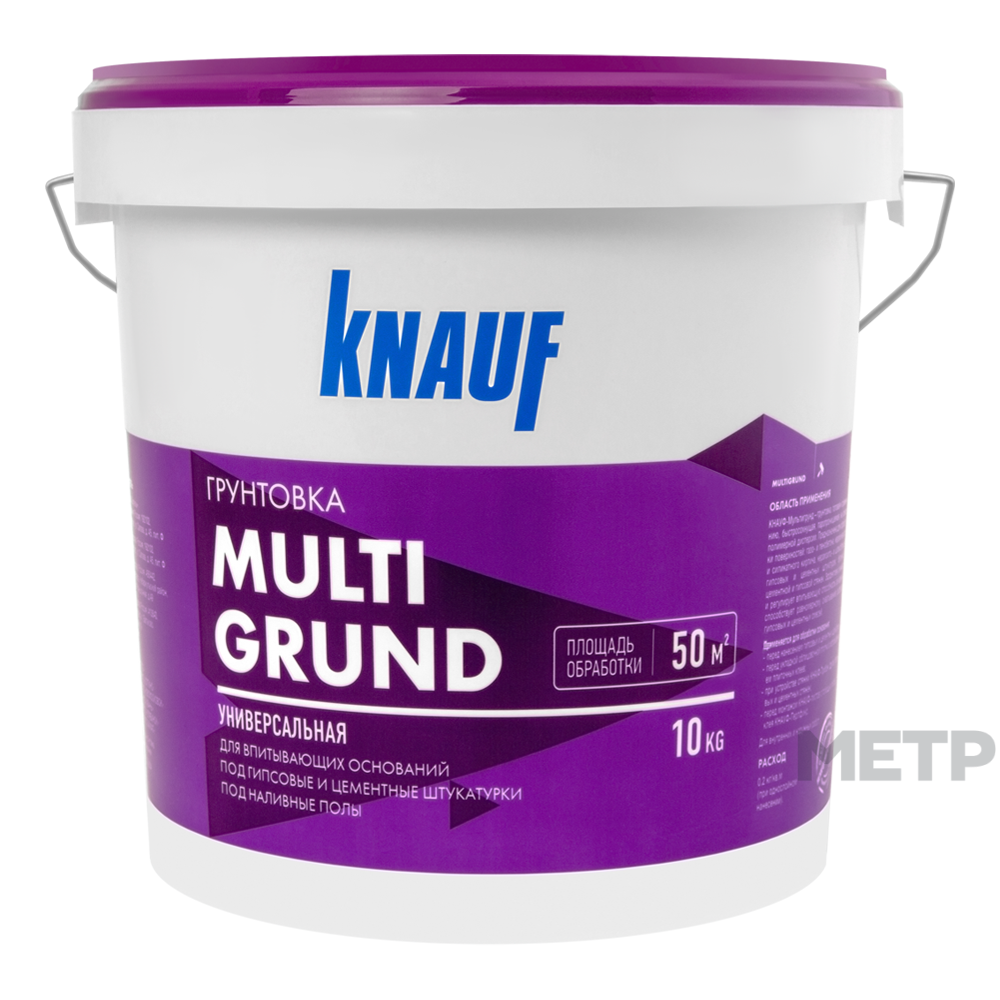 Грунтовка укрепляющая универсальная Мультигрунд Knauf 10 кг предназначена для обработки поверхностей: газо- и пенобетона, керамического и силикатного кирпича, керамзито- и шлакоблоков, гипсовых и цементных штукатурок; бетонной, цементной и гипсовой стяжки. Эффективно снижает и регулирует впитывающую способность основания, способствует равномерному схватыванию раствора гипсовых и цементных смесей.