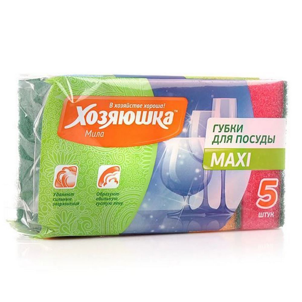 Губка Хозяюшка Мила 9,3x6,5х3 см 5 шт. - универсальная, подходит для любой посуды. Отлично сочетается с любыми моющими средствами.