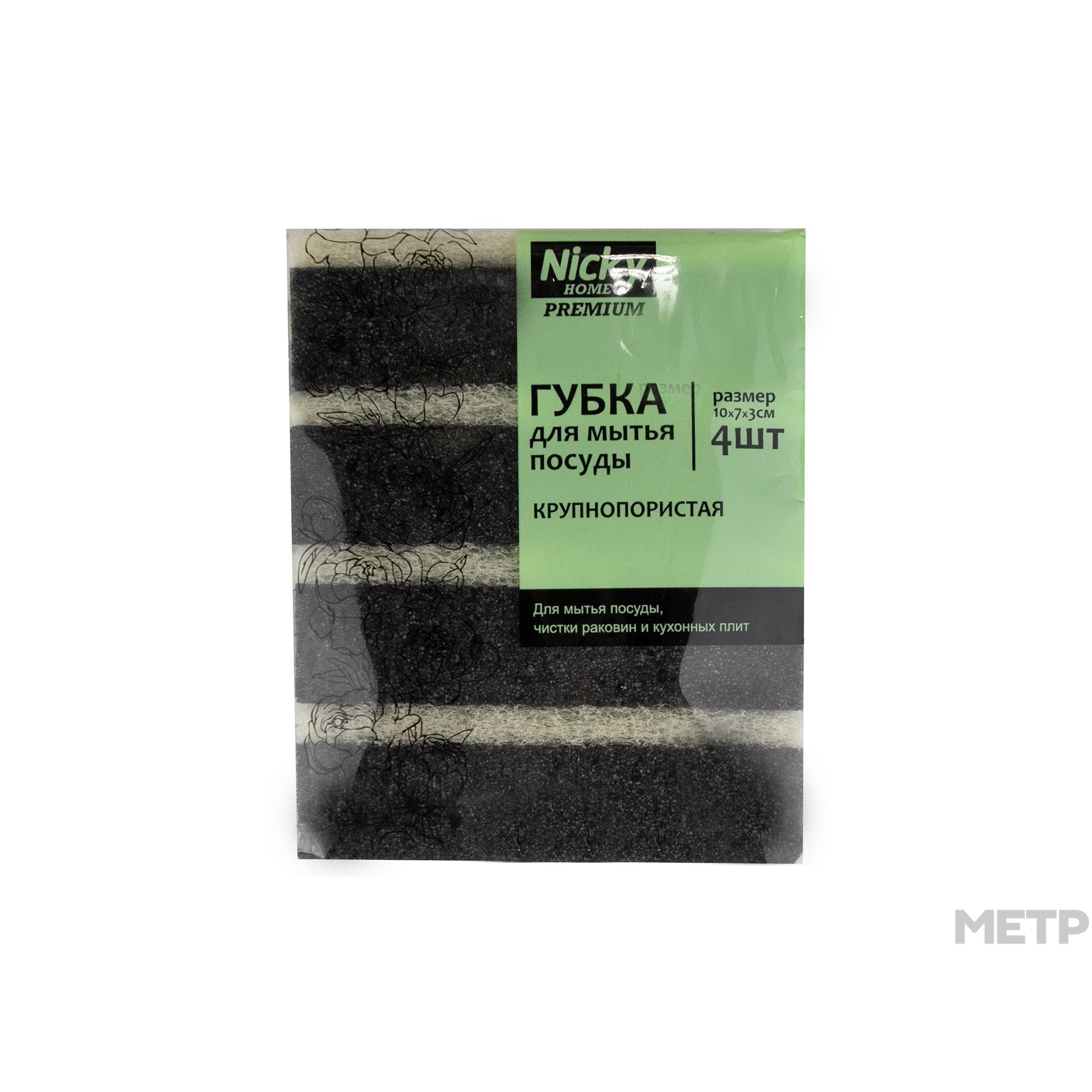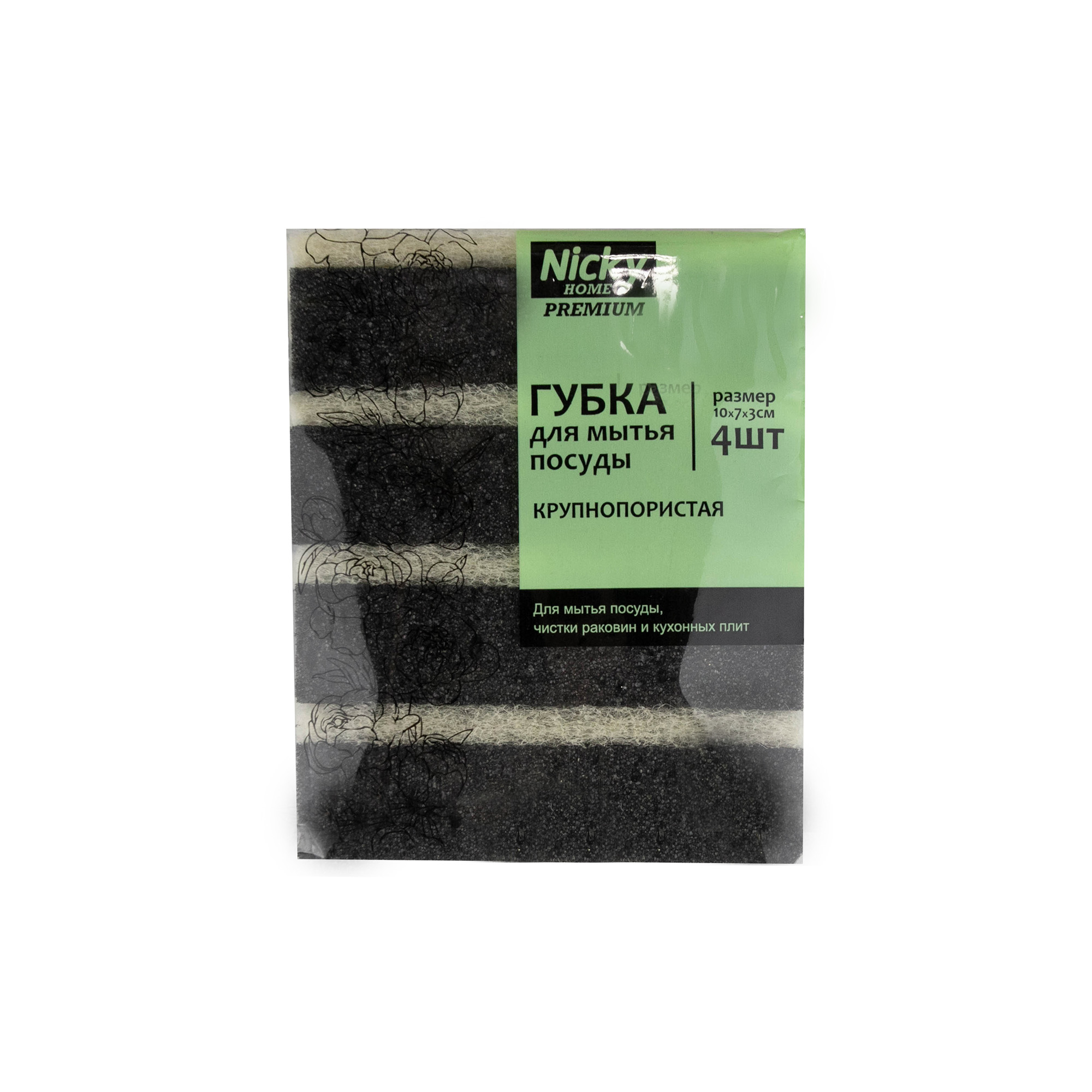 27482 губка для посуды ЧЕРНАЯ крупнопористая 10,7*6*3см 4шт