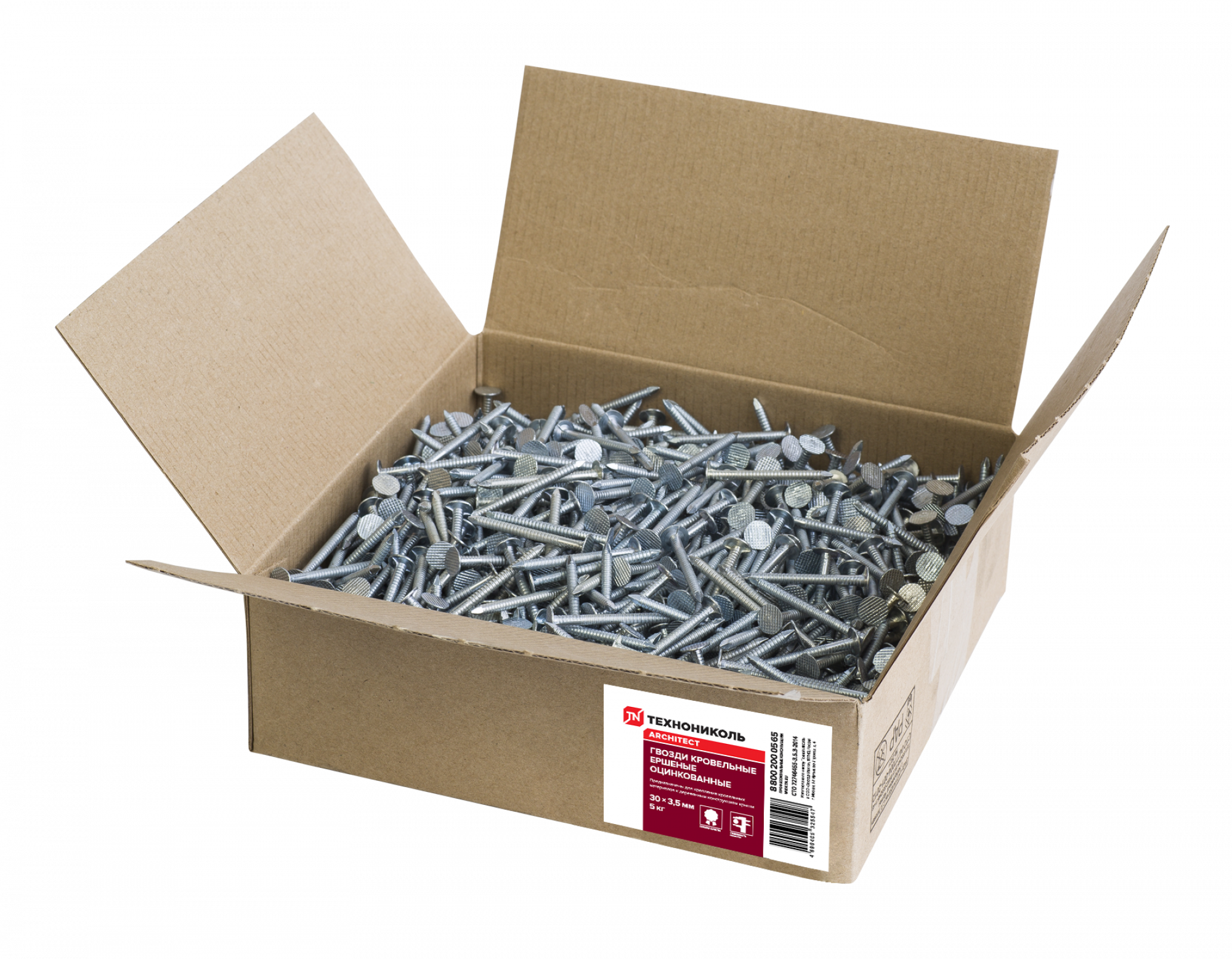 Кровельные гвозди с кольцевой накаткой и цинковым покрытием. Кольцевая накатка увеличивает прочность крепления в 5 раз. Используются для закрепления гибкой черепицы на кровле. Диаметр - 3,5 мм, длина - 30 мм, диаметр шляпки - 10 мм.