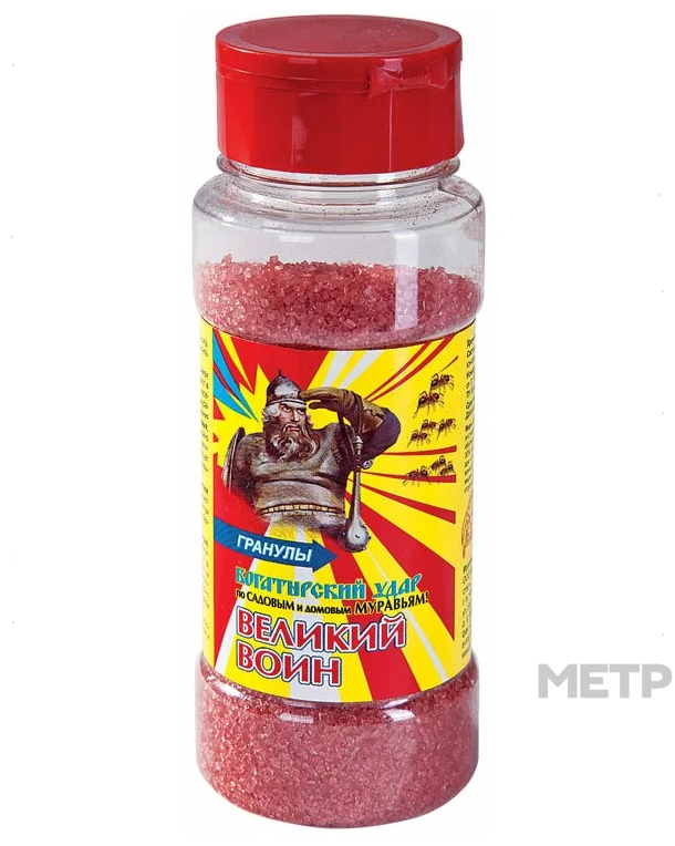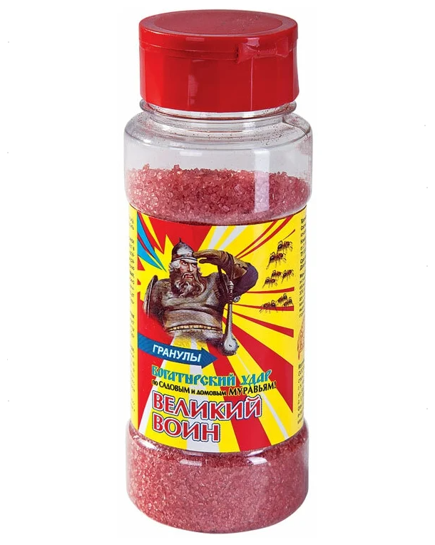 Инсектицид Ваше хозяйство Великий воин 150 гр. — ваш дом захватили рыжие домовые муравьи? Воспользуйтесь гранулированным средством для их эффективного уничтожения — размещайте гранулы везде, где они живут, скапливаются и передвигаются! Вскоре вредители навсегда покинут свои места обитания. Действует до 2 месяцев.
