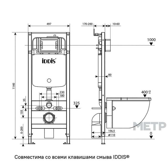 Инсталляция IDDIS Profix для подвесных унитазов 1140 х 497 мм. В комплект входит 2-хуровневая арматура, бачок из ABS-пластика и полный комплект крепежей. Самонесущий рамный блок изготовлен из прочной стали с порошковым покрытием. Есть возможность регулировки конструкции по высоте и глубине. Инсталляция оснащена настраиваемым впускным клапаном. Есть герметичный бачок и монтажное окно. Предусмотрена 1плотнительная прокладка из силикона. Гарантия изделия - 10 лет.