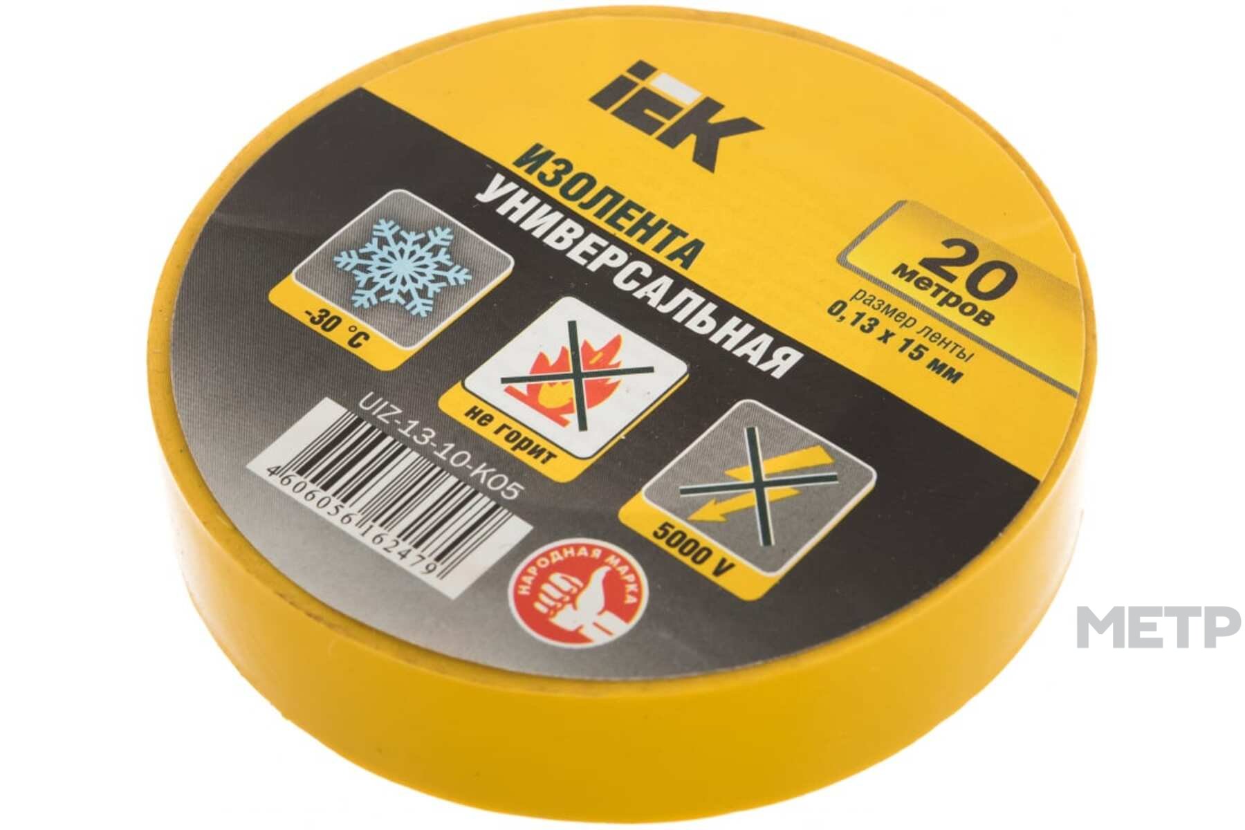 Изолента ПВХ IEK 15мм х 20м жёлтая изготавливается на основе поливинилхлорида. Применяется при промышленных, строительных и бытовых работах для электроизоляции. Используется в качестве изоляционного материала, обеспечивает герметичность, защиту от воздействия влаги, солей, слабых растворителей, и т.д. В ассортименте IEK представлена изолента семи цветов: белая, красная, синяя, желтая, зеленая, черная и желто-зеленая.