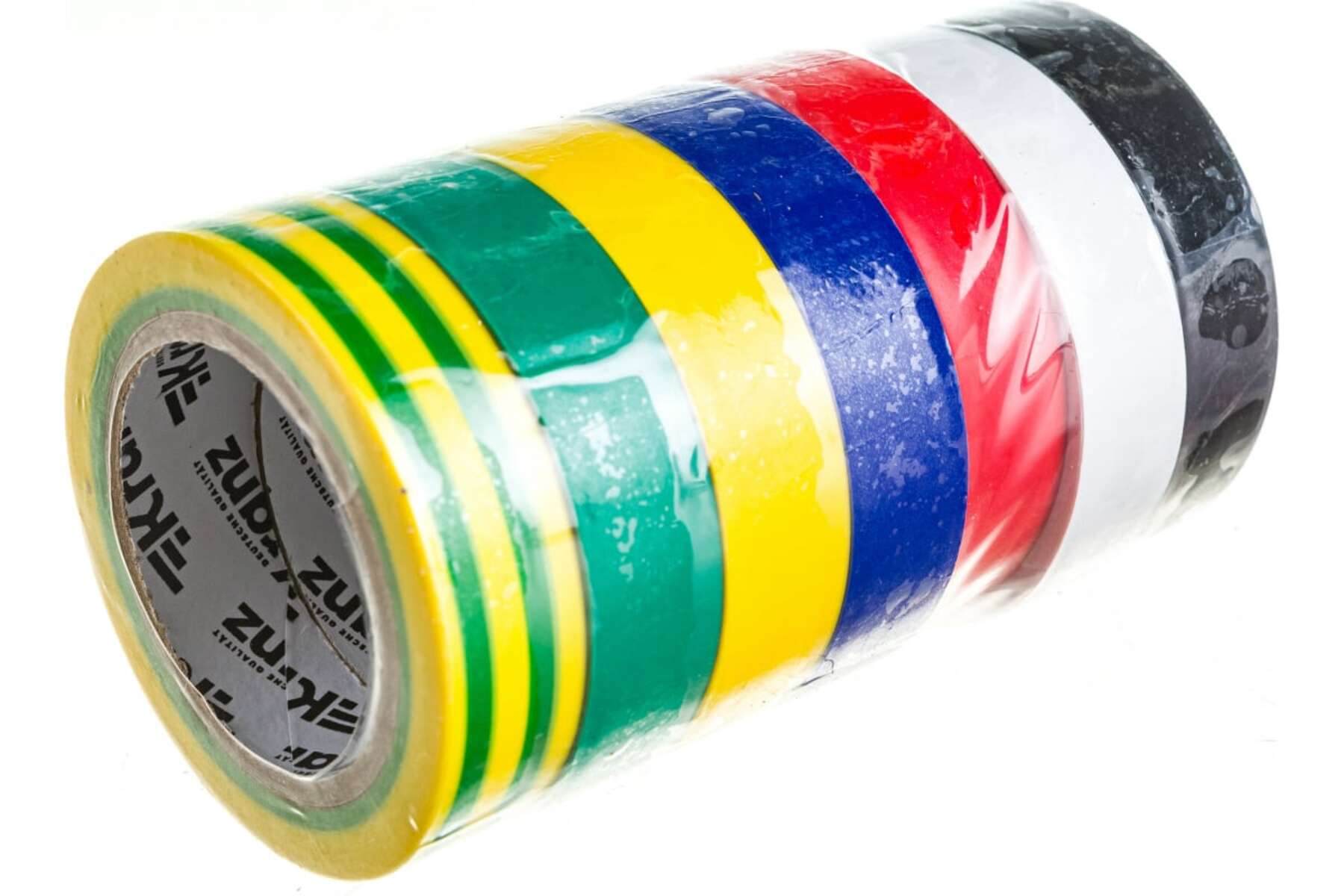 Изолента ПВХ Kranz 15мм х 10м 7 цветов (белый, жёлтый, желто-зелёный, зелёный, красный, синий, чёрный) изготовлена из ПВХ и выдерживает напряжение до 6000 В, что позволяет безопасно изолировать практически любые соединения. Изолента ПВХ Kranz сохраняет свои свойства при температуре от -10 до +50 градусов. Не поддерживает горение. Устойчива к УФ, слабым растворителям и солям