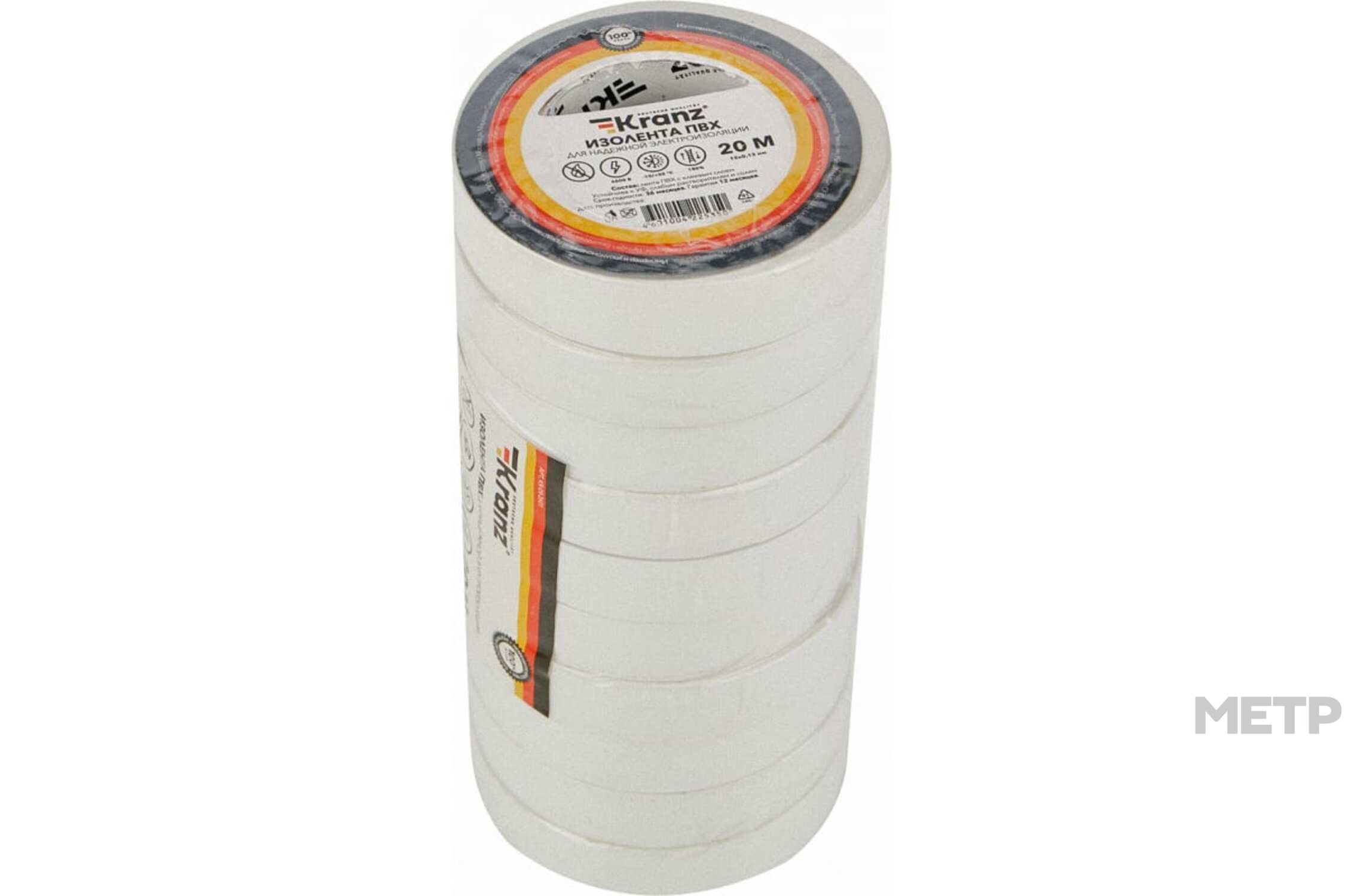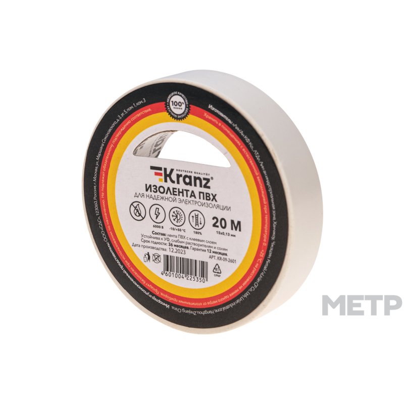 Изолента ПВХ Kranz 15мм х 20м белая поможет быстро и аккуратно изолировать соединение кабеля, используется для надёжной электрической изоляции, цветной маркировки, защиты и герметизации кабелей и проводов. Рекомендуется для использования при температуре от -10 до +50 градусов.Не поддерживает горение. Устойчива к УФ, слабым растворителям и солям