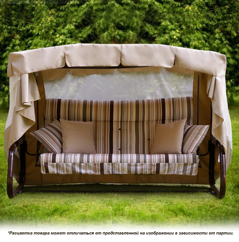 Качели садовые Александрия 3-х местные, сверхпрочные, рассчитаны на одновременное использование тремя людьми совокупной массой до 480 килограмм. Каркас изготовлен из оцинкованной стали, в конструкции присутствуют тент, москитная сетка, матрас (поролон), подушки. Вес изделия 93 кг.