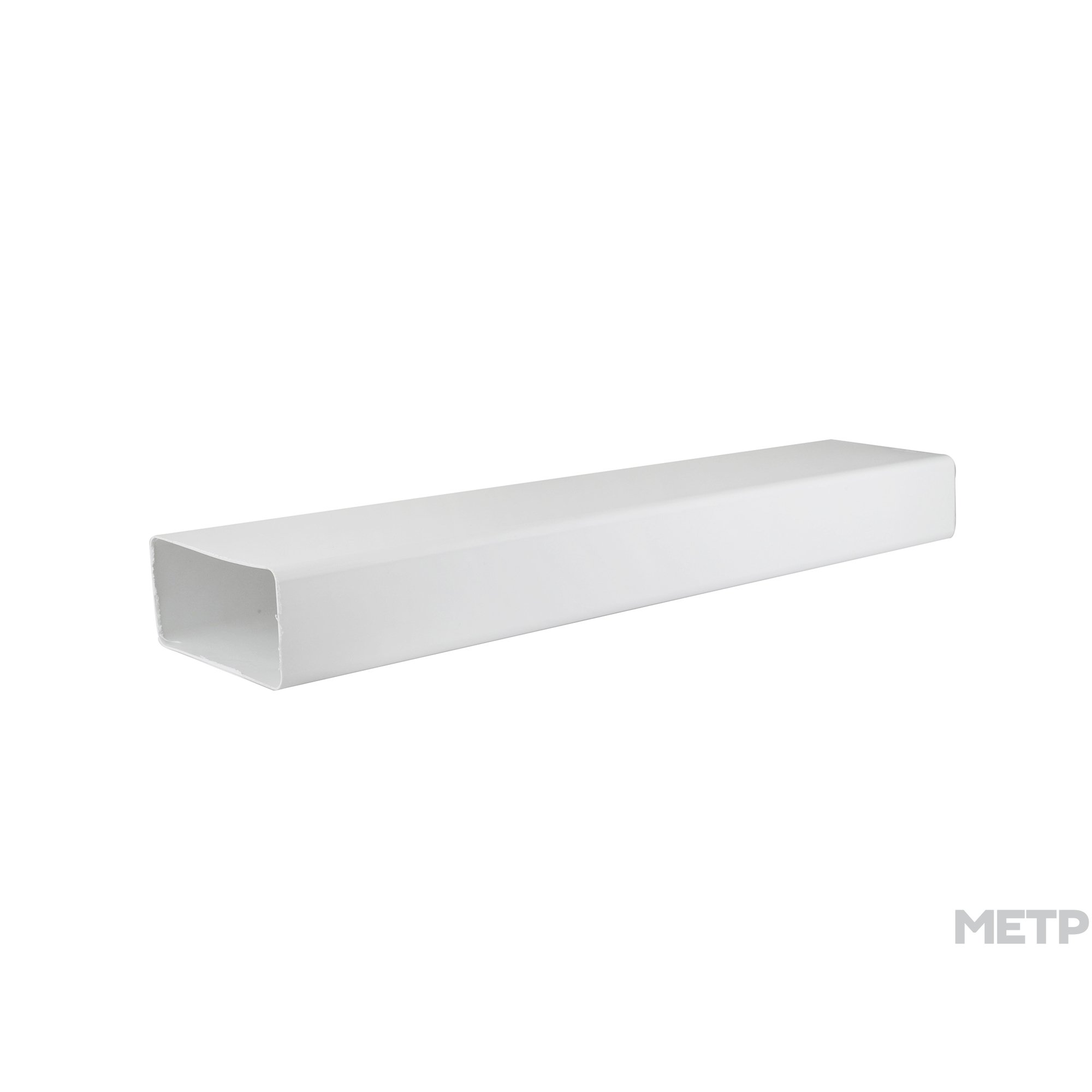 Канал прямоугольный 110x55x500 мм — с помощью таких плоских воздуховодов вы легко смонтируете дома или в офисе вентиляцию приточного или вытяжного типа, возможно сформировать целую канальную систему. Материал изготовления модели — белый прочный ПВХ. Не гудит, не подвержен коррозии, прост в монтаже.