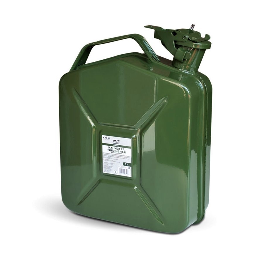 Канистра топливная AVS 5 л металл — компактная емкость под топливо и топливные смеси с корпусом из холоднопрокатной оцинкованной стали, не боящимся механических повреждений. Внутри сталь фосфатирована — это предотвращает коррозию. Носик специализированной формы не позволит жидкости пролиться, а надежная крышка — протекать.