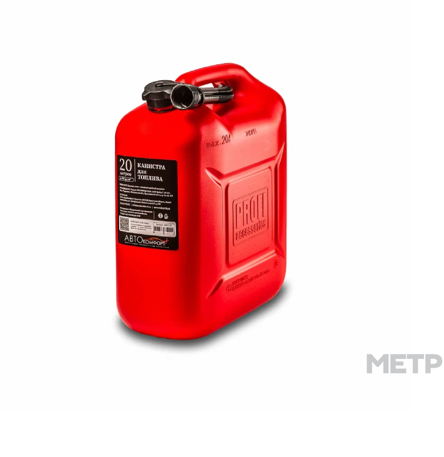 Объёмом 20 литров, что позволяет перевозить достаточное количество жидкости для различных нужд, например, для заправки автомобилей, мотоциклов или садовой техники.