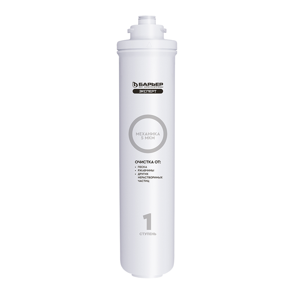 Картридж для фильтра Барьер EXPERT Механика эффективно очищает воду от включений песка, окалин, ржавчины и прочих физических компонентов, благодаря тонкости фильтрации, составляющей 5 мкм. Оригинальные технологии дают возможность легко менять картридж одной рукой, а также предотвратить откручивание элементов конструкции от напора воды. Скорость фильтрации равна 2 л/мин.