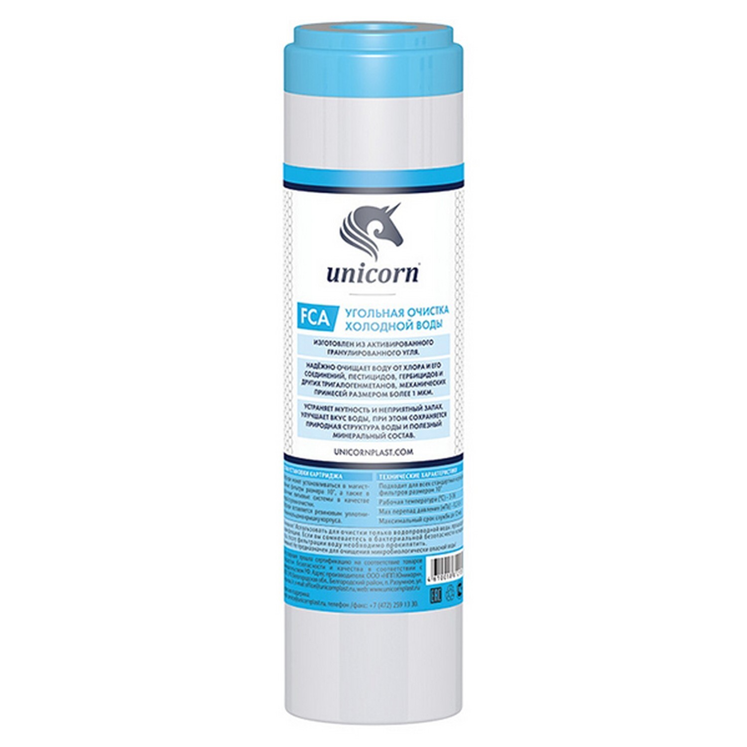 Картридж для фильтра UNICORN SL10 уголь гранулированный 10мкм устраняет примеси хлора, улучшает вкус, цвет и запах воды. Картридж имеет собственные префильтр и постфильтр, задерживающие механические примеси и частички угольной пыли.