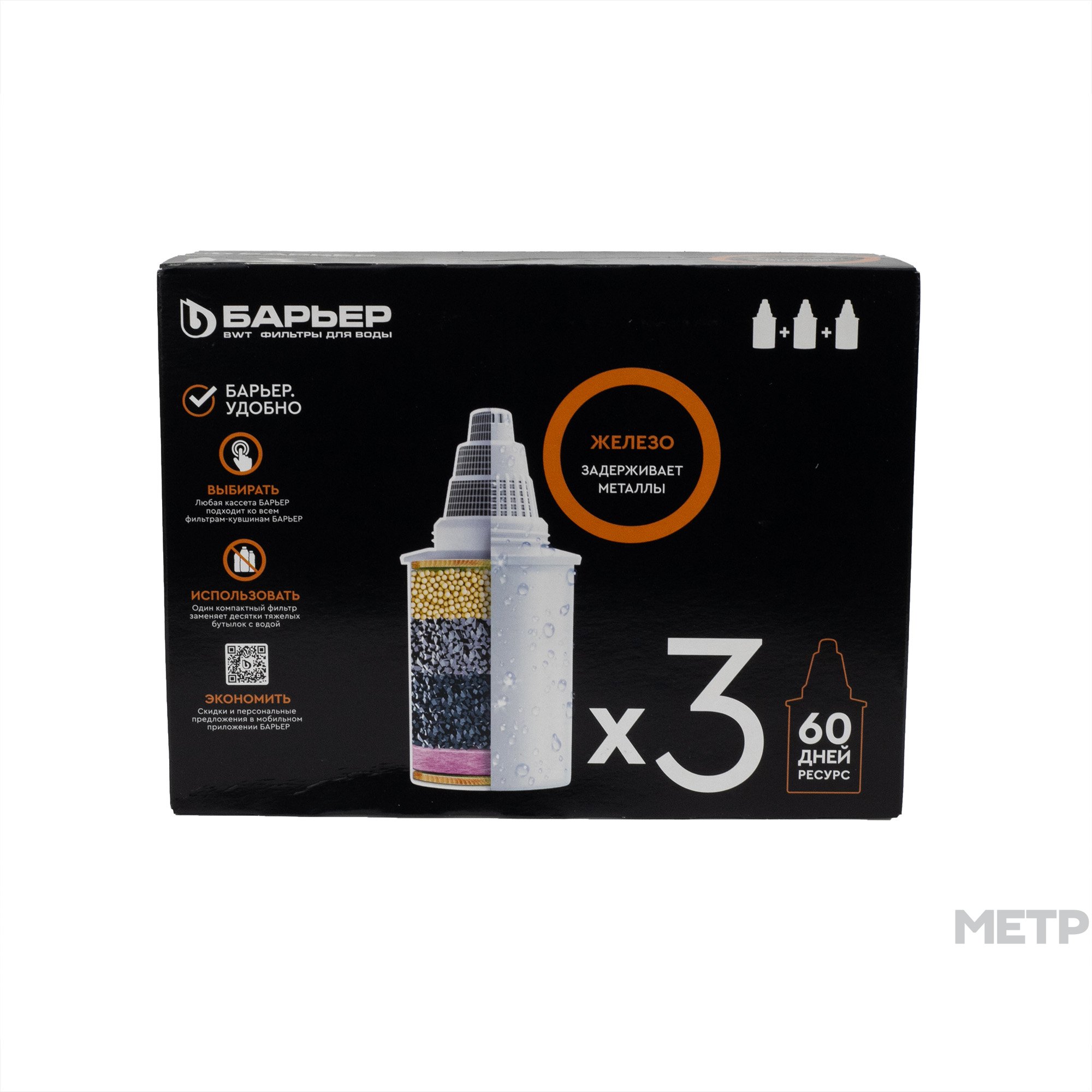 В упаковке 3 кассеты "БАРЬЕР Железо".Специализированная очистка городской воды с высоким содержанием растворенного железа в пределах до 3 ПДК. Удаляет неприятный металлический привкус, делает воду прозрачной. Даёт базовую очистку от хлора, его подобных продуктов, тяжелых металлов. Любая кассета БАРЬЕР подходит ко всем фильтрам-кувшинам БАРЬЕР.