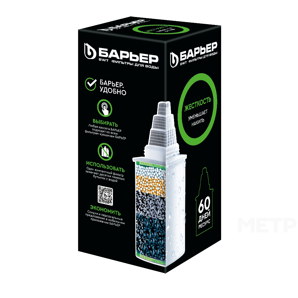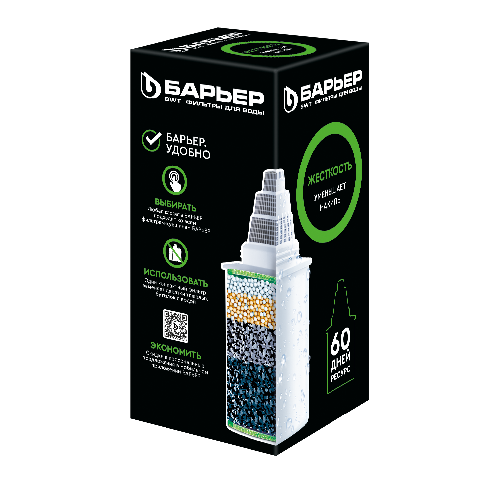 Кассета сменная Барьер Жесткость с помощью своих компонентов смягчает воду, что предотвращает образование накипи и делает ее более приятной для использования. Имеет большой ресурс в 350 литров.